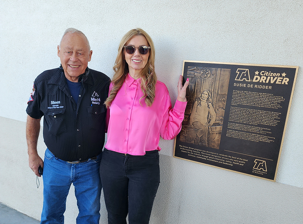 As part of the honor, every Citizen Driver Award winner gets to select a TA, Petro Stopping Center, or TA Express location to be dedicated in their name, allowing their story to be displayed for all travelers that pass through.  The TA Susie chose is the one on Lenwood Avenue in Barstow, CA.