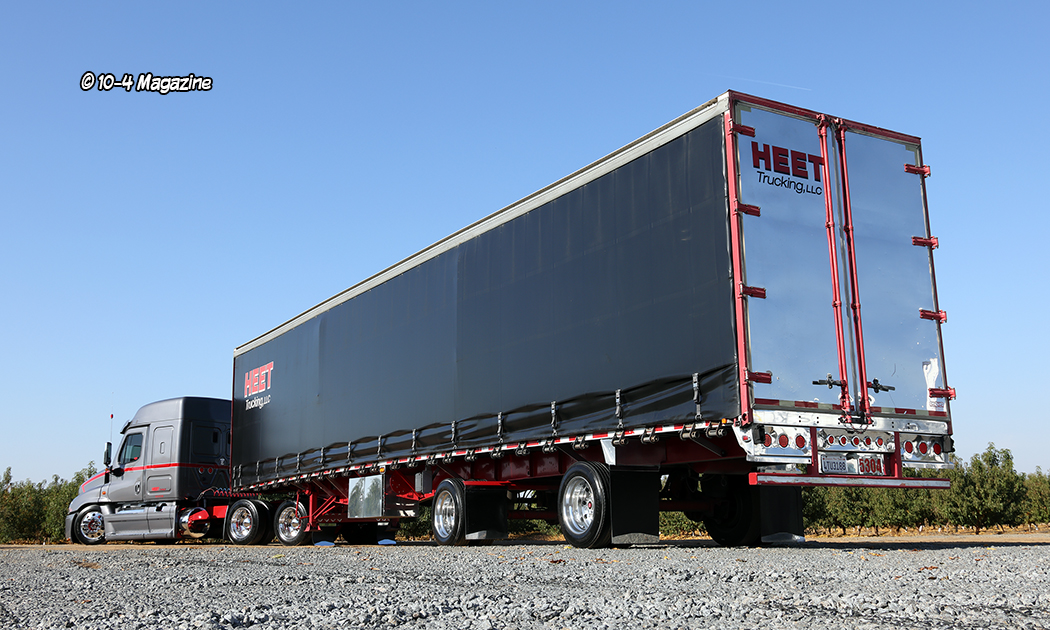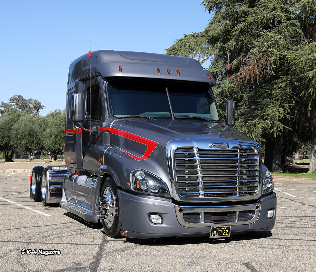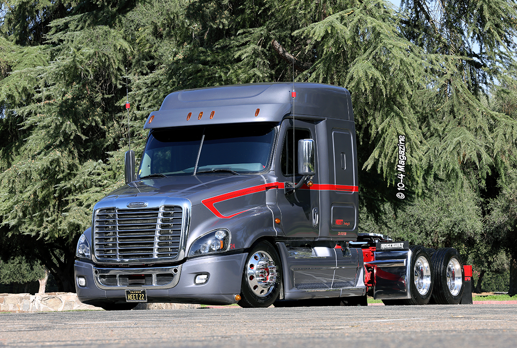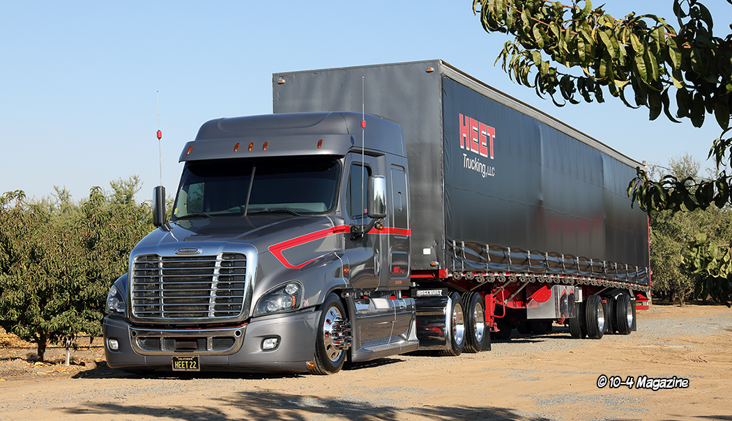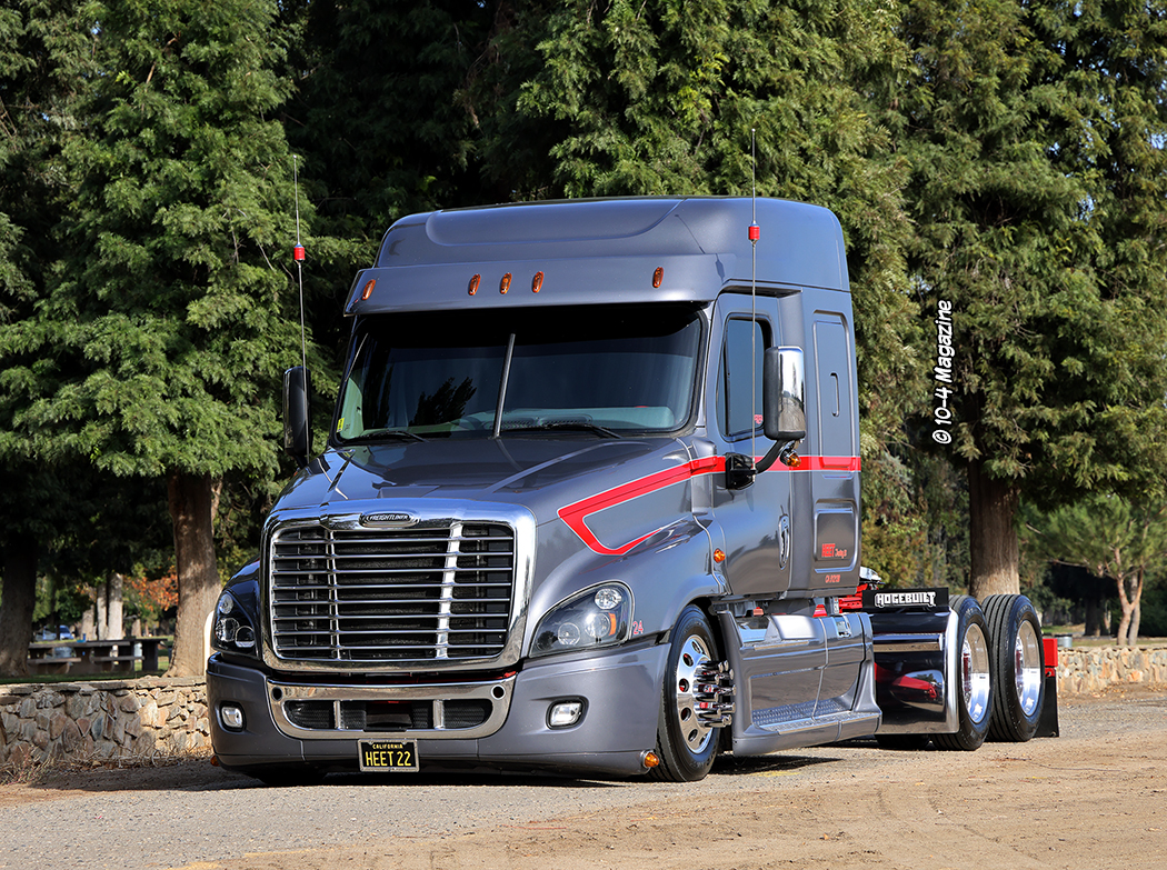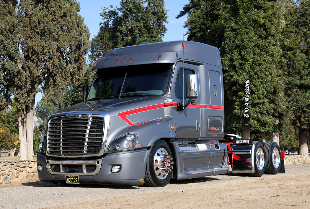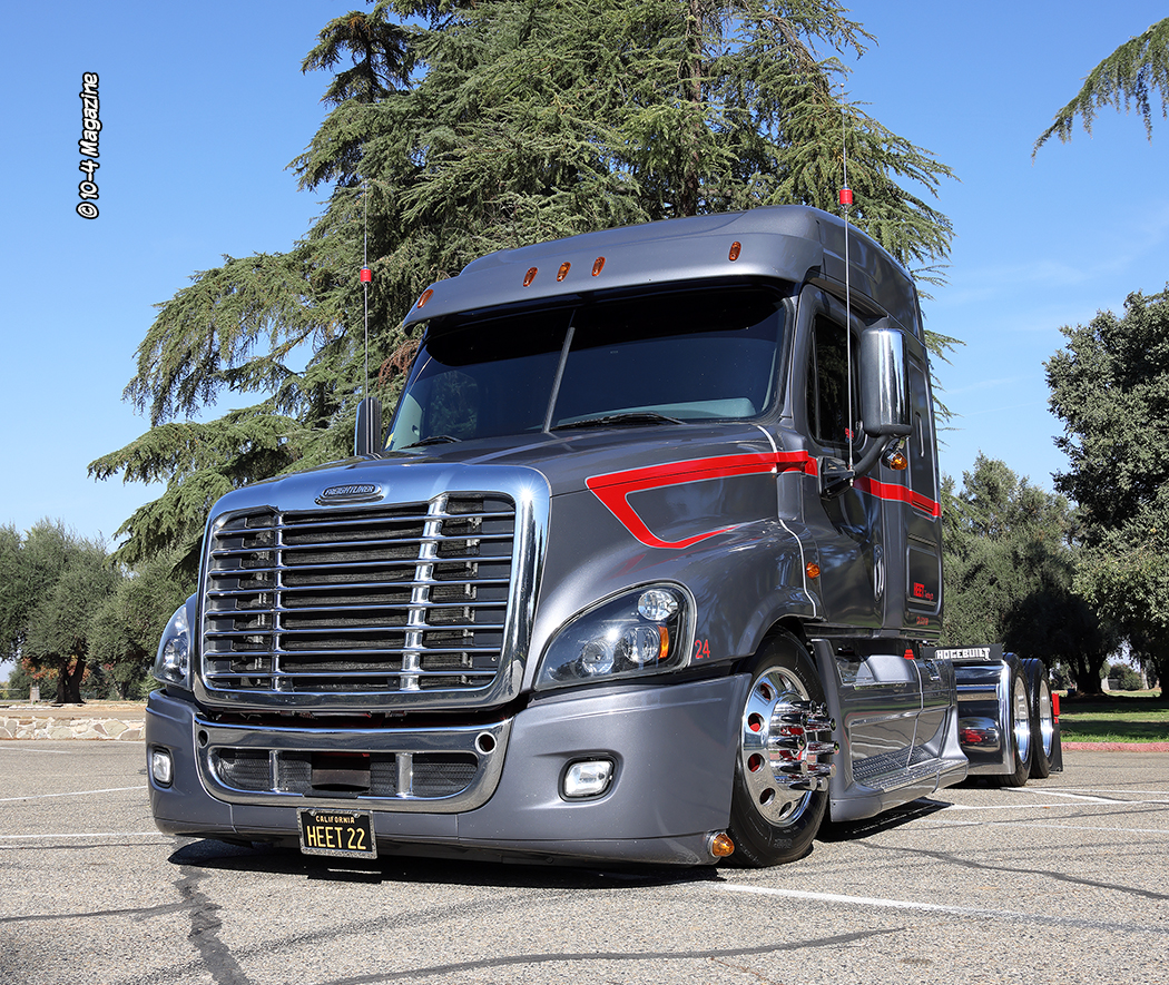 From an early age, Kenny Campos Jr. was always told, “If you are going to do anything, be the best you can be. Always bring the heat!” That lesson has stuck with him his entire life, and today he “brings the heat” as an up-and-coming trucking company owner, a broker, a venue host, a storage facility manager, a husband, and a father. Kenny is a very ambitious man and is always looking for ways to be better and do better. His company, Heet Trucking, LLC out of Dinuba, CA, which got its name from his father’s continuous “Bring the heat!” life lessons, is on the grow, and his unique Freightliner Cascadia recently caught our eye at a truck show in Fresno, CA – yes, that’s right, a Cascadia!!