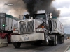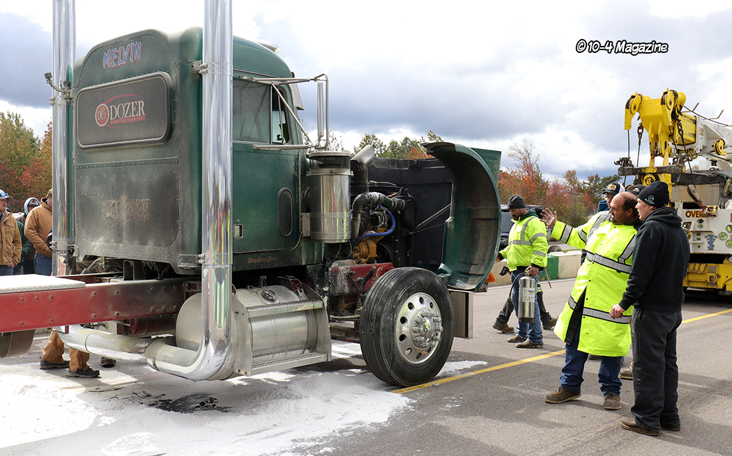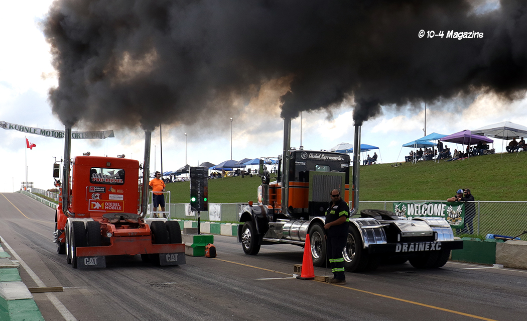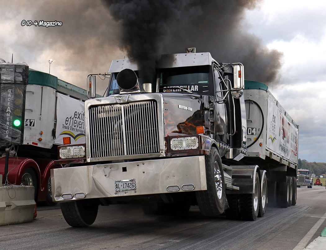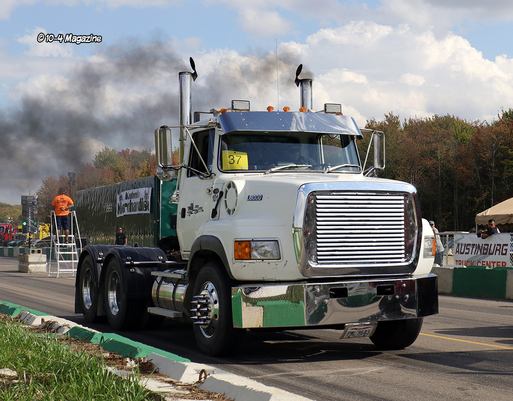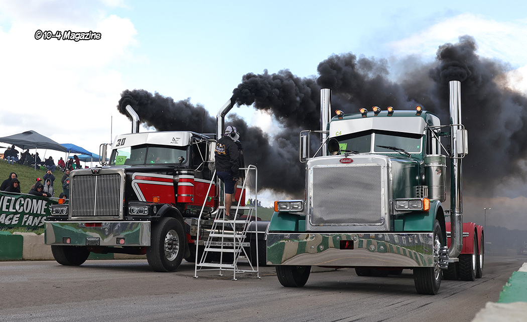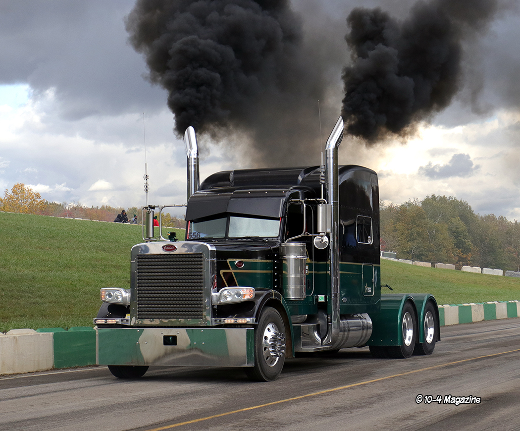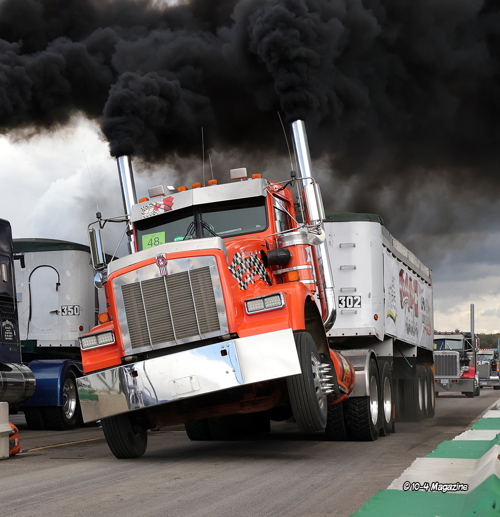 Some other “incidents” included Melvin Classen breaking his drivelines throughout the course of the weekend. He probably went through six or seven of them during this event, and could replace them in about ten short minutes, and then be back at it again. Adam Devine of Boswell, PA was racing his yellow 1979 Marmon conventional, powered by a Cat 3406B. Adam won 1st Place in the “C Mechanical Bobtail” class at Unc’s Semi Stampede in the summer, but he ended up breaking his transmission on Saturday at the Fall Brawl. Neal Dams (featured in our October 2023 edition), who got distracted by someone shouting something at the starting line, ended up breaking a yoke on the drive axles of his purple 1999 Kenworth W900L with a CAT 3406E under the hood.