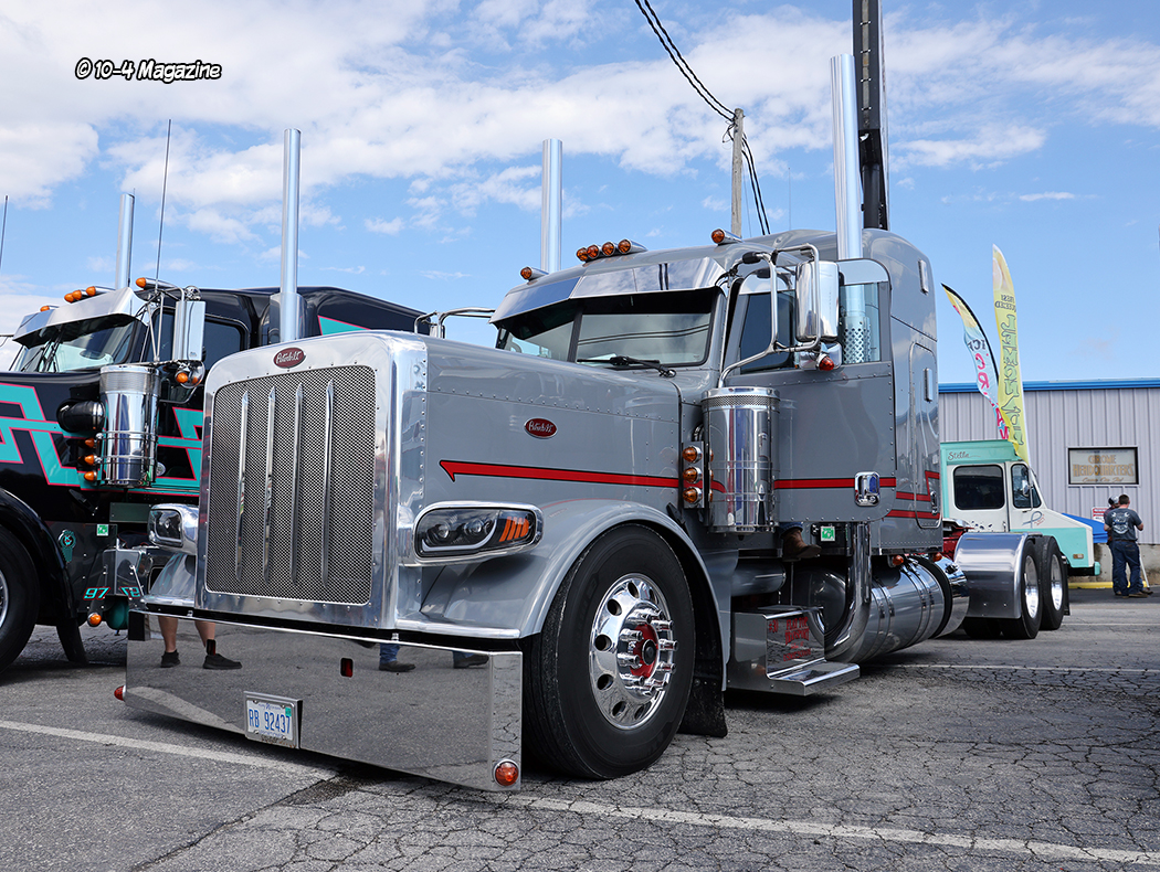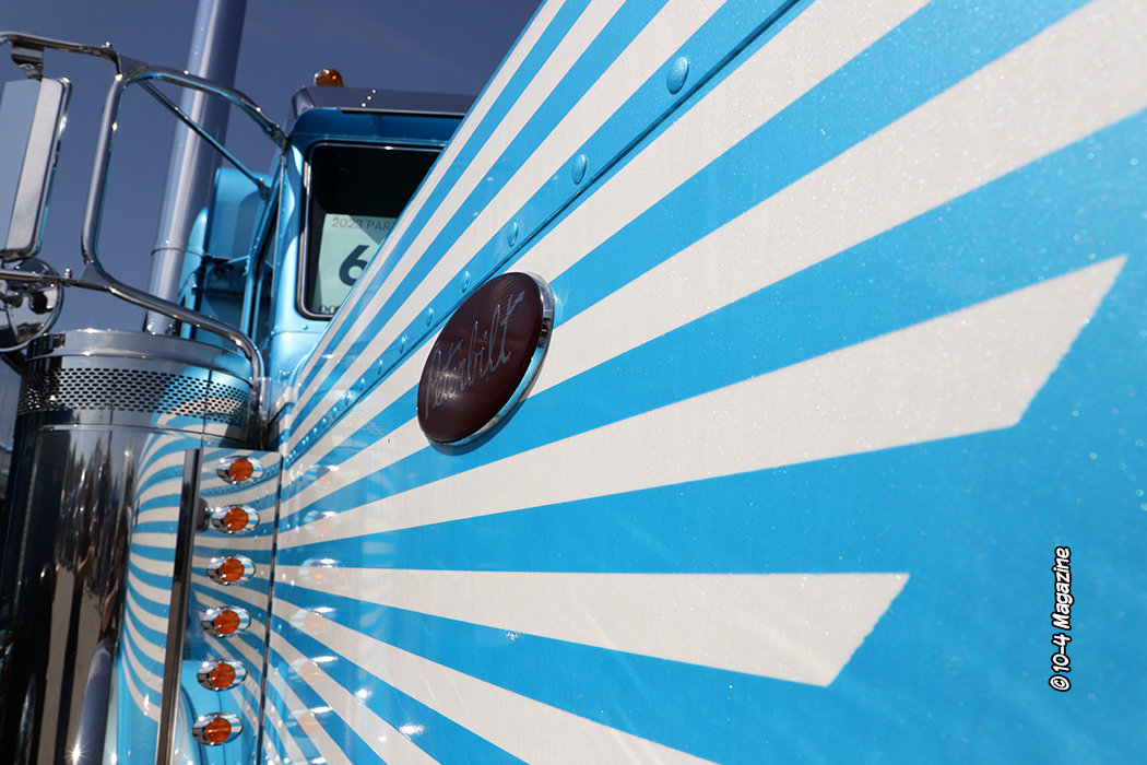 On Saturday afternoon, across the street on the Joplin 44 Petro stage, Donald Trump impersonator Bob DiBuono did a full 30-minute presidential rally and speech. I did not get to be there, but I was told it was incredible. Although this is not a judged show, there were a few awards handed out, after the rally, on the same stage. The Best Bobtail award went to Conrad Shada for his purple and black Peterbilt; the Best Combo trophy went to Zach Strayer and his cream colored Peterbilt and polished cattle pot; the People’s Choice went to Brandon Avant and his red Peterbilt with a black stripe; and the “Top Kenworth” award went to Charlie Bates for his 1962 KW. The Kameron Wilken Memorial Award, chosen by Kam’s mom Shelly, was given to Mason Halcomb and his turquoise Peterbilt and polished hopper trailer.