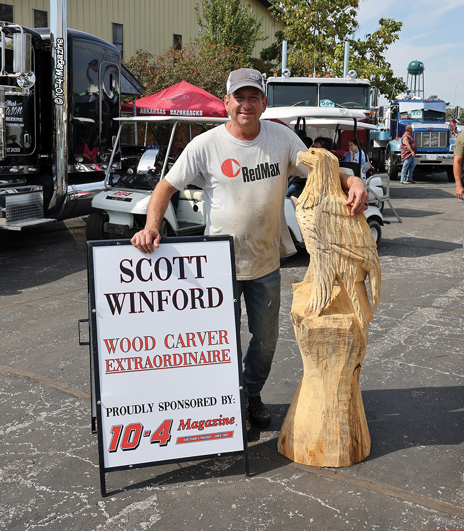 As bad weather loomed in the future forecast, Saturday was nice. We spent the day in the booth and running around the show, capturing pictures and videos of various happenings. One of those happenings was Scott Winford, a talented chainsaw carver from Arkansas, who we (10-4 Magazine) sponsored to be at the event. This guy was awesome! We watched him carve several sculptures throughout the day including Halloween pumpkins, a majestic eagle, and an owl. There were also several monster truck exhibitions happening throughout the day, along with a kid pedal tractor pull, which we captured, as well.
