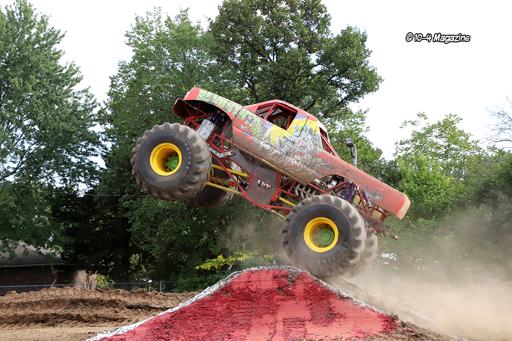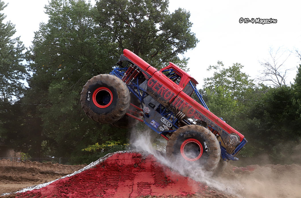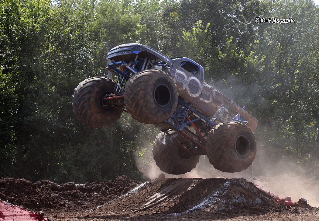 Across from our booth, OOIDA and Chrome Shop Mafia (CSM) were hosting a whole hog roast, but before the pig was put in the smoker, a couple local tattoo artists spent a few hours tattooing the hog with the OOIDA logo and the CSM “tommy gun” logo. It was fun, but kinda weird! The pig was put into a unique smoker that looked like an old 4-wheel drive SUV overnight, and then served the next day. Unfortunately, due to all the rain on Thursday night and Friday morning, the truck and tractor pull, scheduled for Friday night, had to be canceled because of all the water and mud. However, in its place, the monster trucks did an impromptu jam session much to the crowd’s delight.