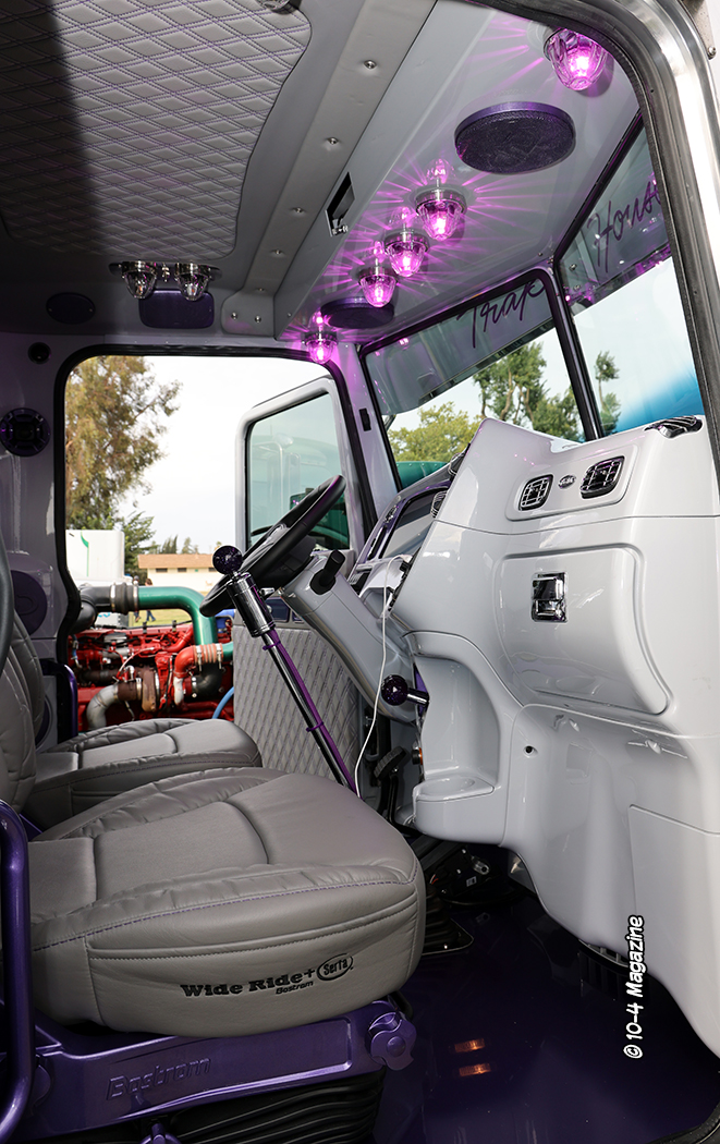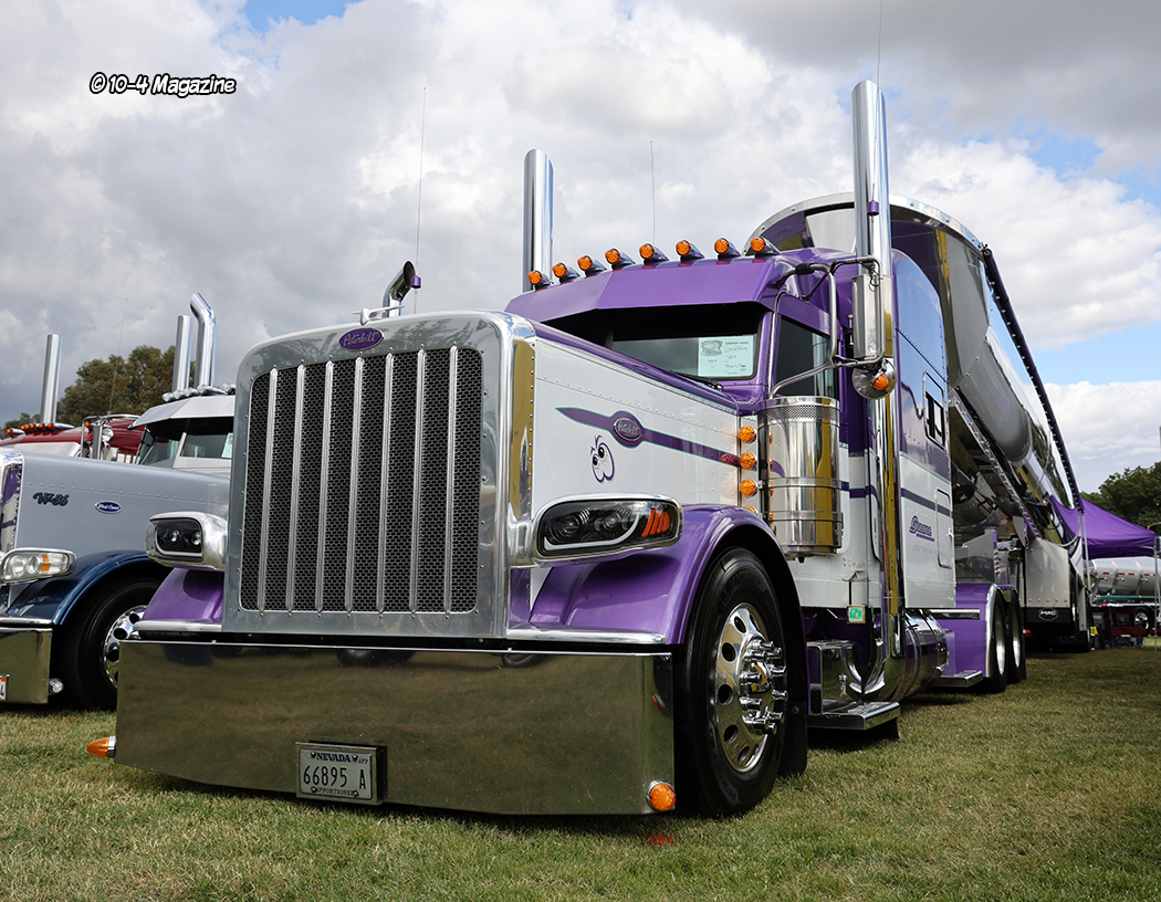 Some of the show’s big winners included Double E Trucking, with a few different trucks earning Best Tanker, Best Interior, Best Fleet, Best of Show and People’s Choice, and our recent November 2023 cover truckers, Bert and Lisa Greene of Greene Trucking, who went home with trophies for Best Lights, Best Engine, Best Construction, and the coveted Competitor’s Choice for their cool white and purple Peterbilt and MAC end dump.  North Coast Wine took a few trophies home, as well, including Best Professional Show Truck.  Another notable winner was our current cover trucker, Kenny Campos at Heet Trucking, who won the Best Freightliner award.