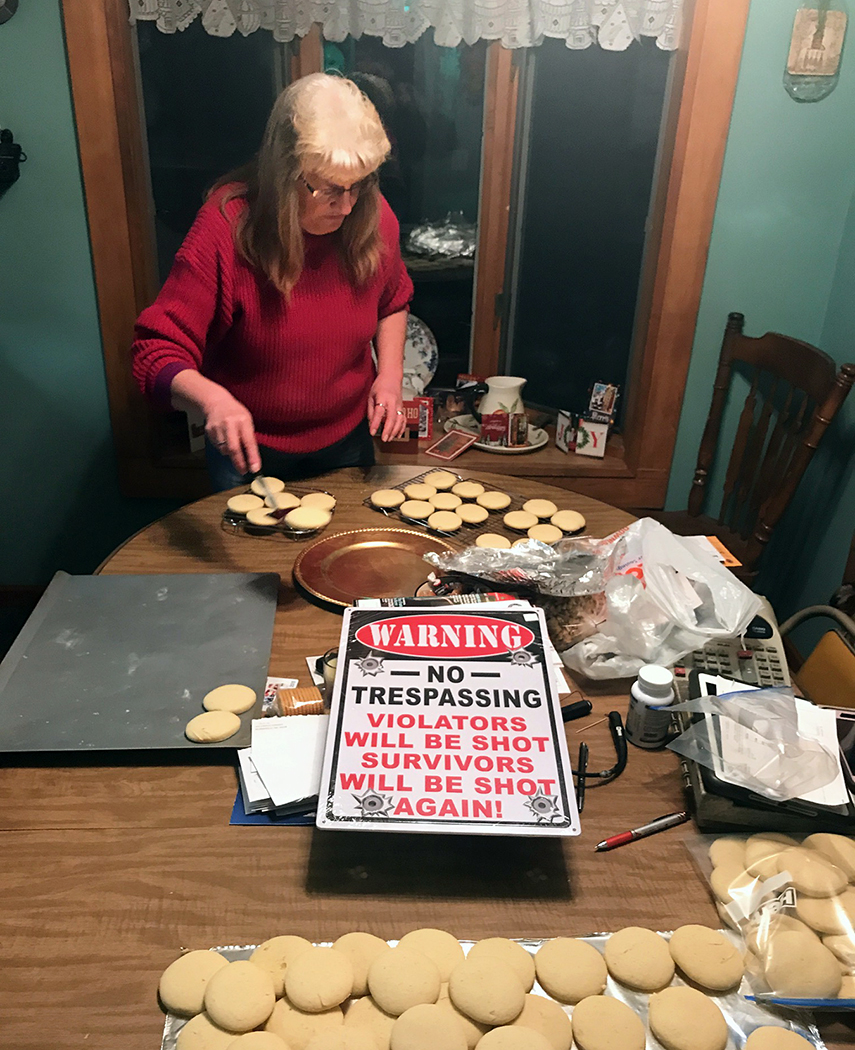 Working hard just to keep the truck on the pavement, I could barely see past my headlights. The trees started to hit the stacks and bang against the front of our trailer. I couldn’t see them, so Steve rolled his window down and leaned out the passenger side, holding on to the mirror bracket for support. With him guiding us around the low branches and me gripping the wheel as if our lives depended on it, we crawled up the hill and over the top. Fortunately, we had the whole road to ourselves since the locals were all at home snug in their beds while sugar plumbs danced in their heads. After a stressful couple of hours, we made it down the other side of the hill. We laugh about it now, but at the time it wasn’t very funny.