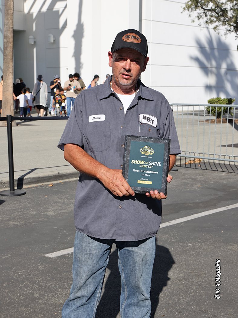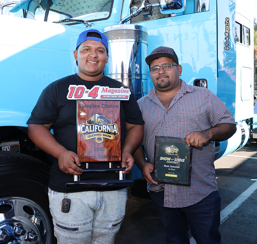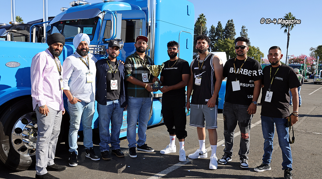 We at 10-4 Magazine, like we have always done at this show, with help and support from our friends at Rockwood Products, sponsored the People’s Choice award and provided the beautiful trophy.  This year’s People’s Choice winner was Ronald Granados of Granados Transport and his baby blue 2022 Peterbilt 389.  Strangely enough, the Best of Show award went to another baby blue 2022 Peterbilt 389, but this one was owned by Laddi Singh of So-Cal 24 Hour Road Service.  And both of these trucks had standup sleepers, which are not all that common, these days.  It was weird.