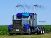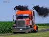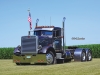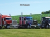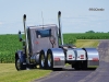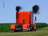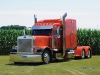 On August 17, 1990, Wilbur Prins purchased the pictured 1971 Peterbilt 359 from Kenworth in Sioux Falls, SD for $9,500.  It has a 350 Cummins, a 13-speed, 3.55 rears, and a 265-inch wheelbase.  The orange 2000 Pete 379, which Tom Prins purchased in 2005, had 160K miles on it.  It has a Caterpillar 3406E, a 13-speed, 3.55 rears, and a 265-inch wheelbase.  It sports WTI double hump fenders, 8-inch stacks, and a Lincoln Chrome bumper.  Chris Prins (Wilbur’s grandson and Tom’s son) bought his 2000 Peterbilt 379 on September 26, 2022.  His truck has a CAT 2WS, a 265-inch wheelbase, an 18-speed, and 3.70 rears.  However, since I photographed the trucks, his truck has seen some changes including 3.36 rears, a stretched frame (to 290-inches), a custom deck plate,  an Iowa Customs 20-inch rear bumper, and I-29 Customs rear fenders.