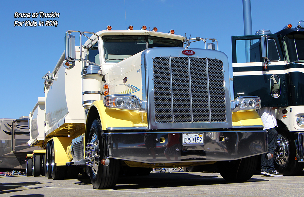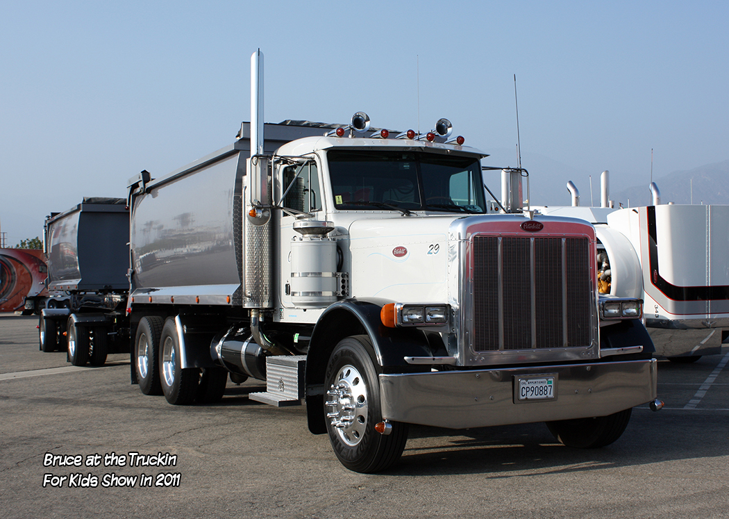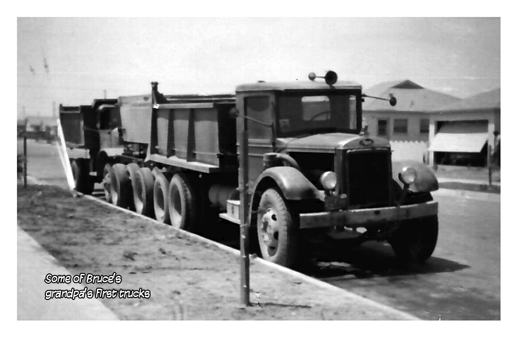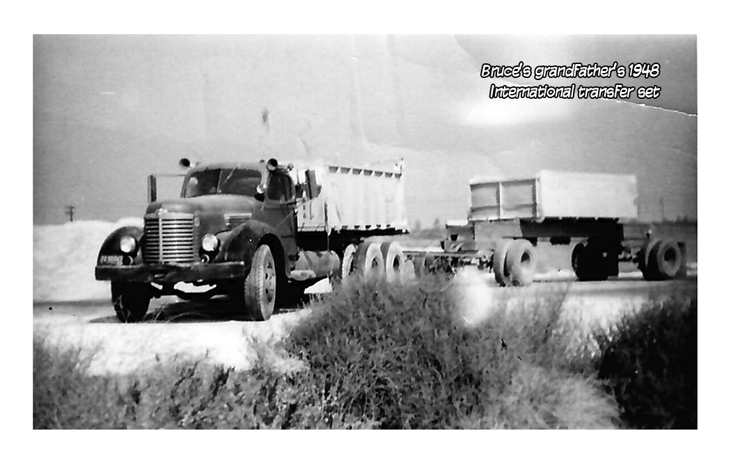 Bob and Bertha Payan, who were Bruce’s grandparents on his mom’s side, began trucking in 1942. In 1948, they formed Payan Trucking Inc. (PTI), and Bob started running a transfer (he had one of the very first transfer trailers ever made by Bob Likens in the early 1950s). In the beginning, grandpa hauled a lot of salt, but as Southern California was booming, the construction industry took center stage, and sand and gravel became their main commodity. They eventually moved to Fullerton, a suburban city in Orange County about 25 miles southeast of Los Angeles, and then built their fleet up to five trucks. They retired and sold the company in the mid-80s, but it still exists, and is still called PTI, although the initials no longer stand for Bruce’s grandparents’ last name. Grandpa Bob just died a few years ago at 98 years old.