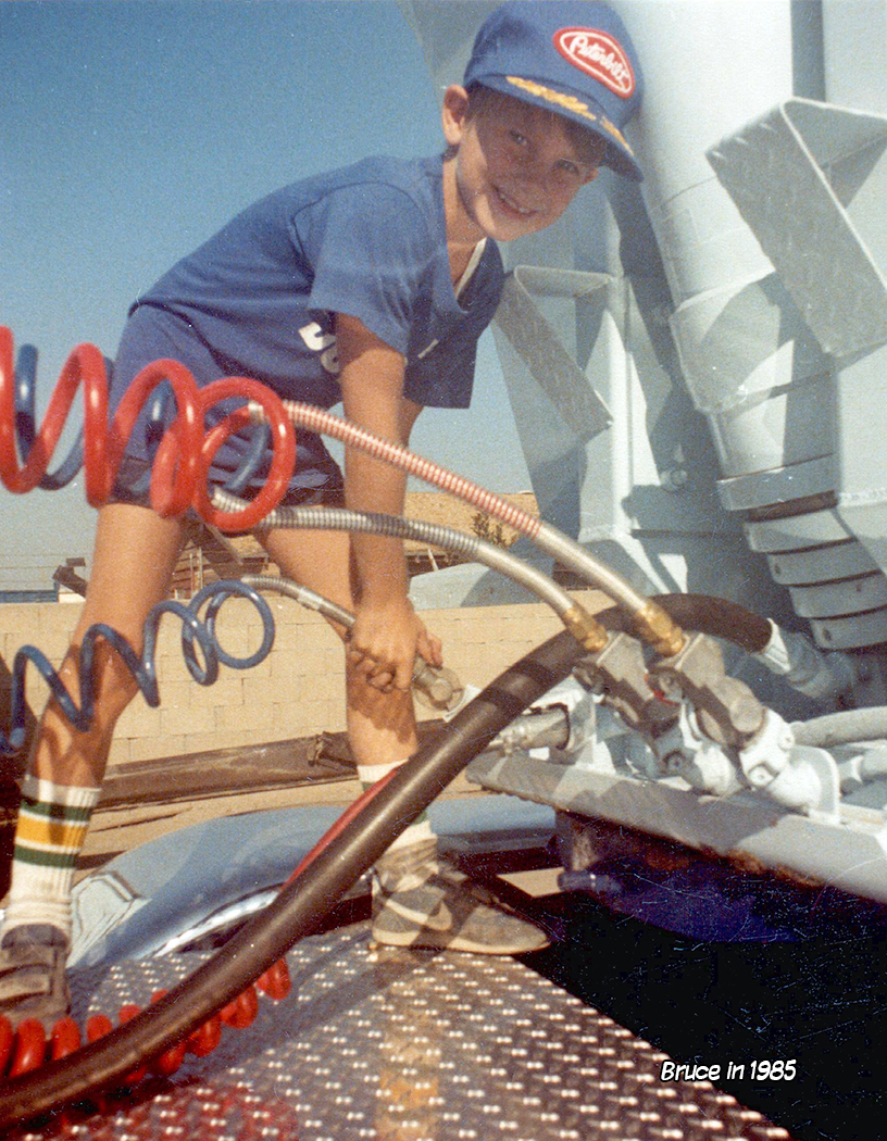 From the beginning, Bruce was always around the trucks – there was nothing else he ever wanted to do. He told us a story about how he would sit down with his mother, calendar in hand, and go over all the days he didn’t have to go to school, asking her, “Do we work that day?” If she said no, he would sadly move on to the next date and then ask the question again. But if she said yes, he enthusiastically circled the day with a red marker, excited about being able to go trucking that day. Back then, Bruce was his dad’s shadow, following him everywhere he went. As he got a little older, he began washing and greasing the trucks, then changing tires, and eventually his dad let him operate the transfer when he was out trucking with him. At just eight or nine years old, Bruce was driving transfers inside plants, to get loaded, while his dad stayed in the office and did the paperwork.
