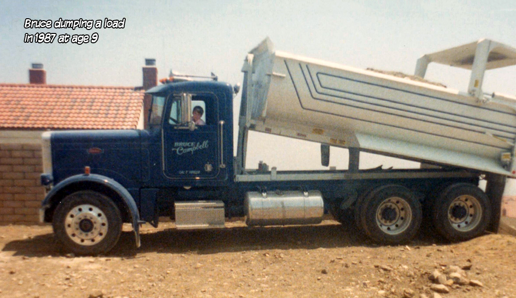 Growing up in Fullerton, Bruce’s dad, also named Bruce, got drafted after high school and was sent to Vietnam. After his military service was completed, he and Bruce’s mom Ellen got married, and then moved to the Seattle area, where Bruce’s dad began building a name for himself as a professional golfer. However, after breaking his wrist, he had to give up on that dream, and the two moved back to Southern California. In 1976, Grandpa Bob taught Bruce’s dad how to drive a truck, and Grandma Bertha taught Bruce’s mom how to run the office. The four worked together for about a year, and then, in 1977, Bruce’s parents formed Bruce Campbell Sand & Gravel and went out on their own.