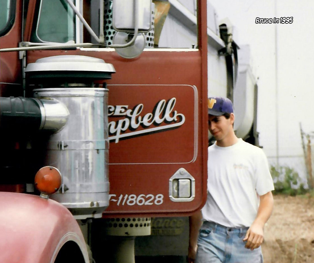 At 17 years old, Bruce got his CDL permit to start driving a truck (legally). That summer, before his senior year in high school, he drove with one of his dad’s drivers every day to get the experience he needed. In January, after turning 18, he got his CDL. For the remainder of his senior year, he would go to school in the morning and early afternoon, and then go trucking for the rest of the day when he got out. Graduating on a Friday in 1996, Bruce began his full-time trucking career the following Monday morning in a 1996 Peterbilt 379 transfer – but his parents weren’t too excited about it.