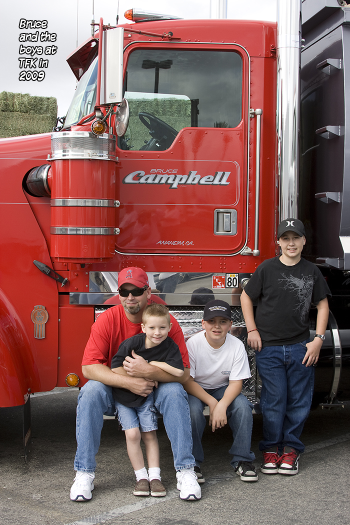 Driving full-time at his parent’s company, Bruce got no special treatment. But, whenever his dad bought a new truck, Bruce was the one who got to drive it (whether he wanted to or not). Getting married in 1998, the couple had their first son Matthew in 1999, and their second son Scott in 2001. A few years later, in 2004, Bruce bought a truck from his parents – a silver and blue 2003 Kenworth W900 transfer – and then went out on his own, forming Bruce Campbell Trucking. Just a couple years later, Bruce and his wife divorced, forcing Bruce to sell that truck, put his authority on pause, and go back to work as a driver at his parent’s company. In 2008, he moved from Orange County to the High Desert community of Hesperia, CA.