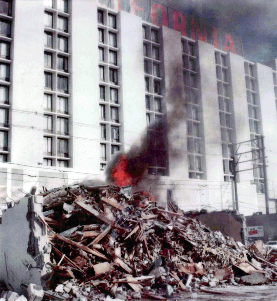 There was some controversy when it was time to tear down the Las Vegas Ice House, because it was a historic building, and the largest early structure in town. It had been abandoned in 1983, and in 1988, the city issued a permit to Union Pacific Railroad, allowing it to be leveled for safety reasons. Art got the bid for the job to demolish the structure and remove what was left of a building that had once been an important part of Las Vegas history. Joe told me that Art would look at the project he was taking on and figure out what would be the best and safest way to knock it down. In the case of the Ice House, the salt on the inside of the building had helped to deteriorate the cement, so all he had to do was push the building in on itself. At other places, he would get there early in the morning, when there were not a lot of people around, and have the job done before it became more dangerous.