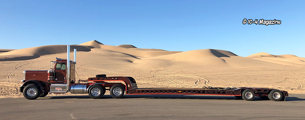In 2013, CARB started bugging Jesus, so he called me to order a new Peterbilt – and we hit it right off. Jesus really wanted a King Ranch dark copper color, and with some help, we were able to get that from the factory. This first brand-new Peterbilt, and many to follow, was drop shipped for them to our friend Mike Green in Yuma, AZ. The next year they ordered a truck-tractor combo, which is a truck that has a fifth wheel, but can also be fitted with a dump bed, making it very versatile. They got to watch this truck being built in Denton, TX, and his wife was even able to drive it off the line! They added two more trucks in 2017 and then one more in 2018 and 2019. In 2021 he added two low boy trucks and opted to have them shipped to Kansas City for me to do some tweaking on (hide the DEF tank and add straight stacks), so I was finally able to meet Jesus in person when he came to get them.