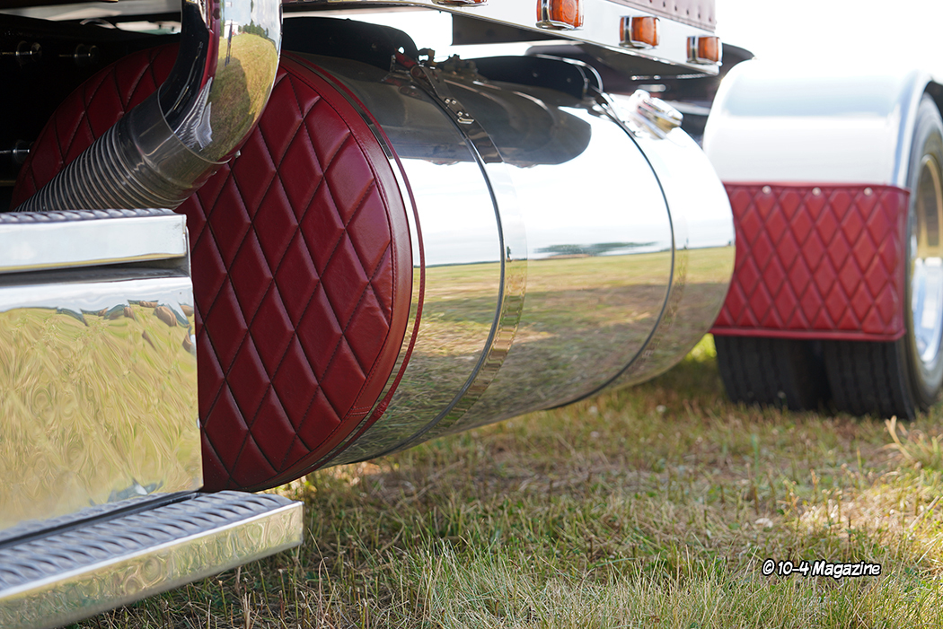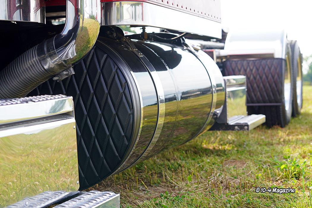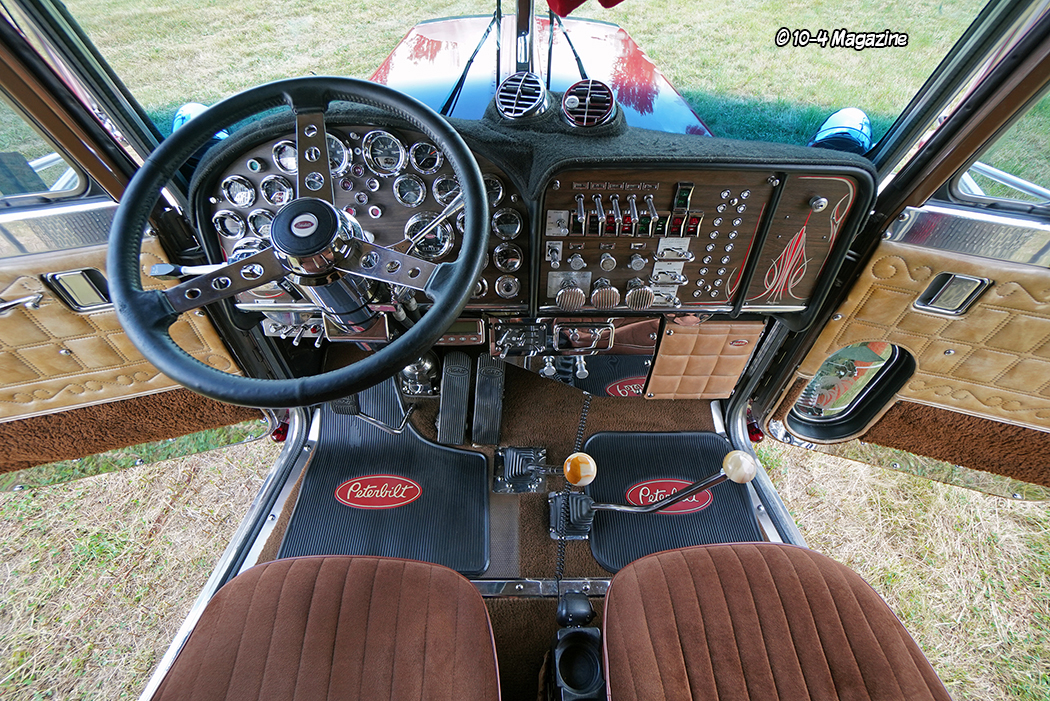 Starting the truck rebuild in 2014, Chris planned to run the old Peterbilt part time when it was finished and then work in the upholstery shop the rest of the time. While building the truck he was driving part time for a company. Wanting the truck to look period correct, he began gathering used parts, including a 379 standard air leaf cut off (rear frame). By then, his dad had moved back from California to Missouri, so he helped Chris do the cut off. Then, they took the truck to Jay Romack’s shop south of Neoga so Chris could do the paint work.
