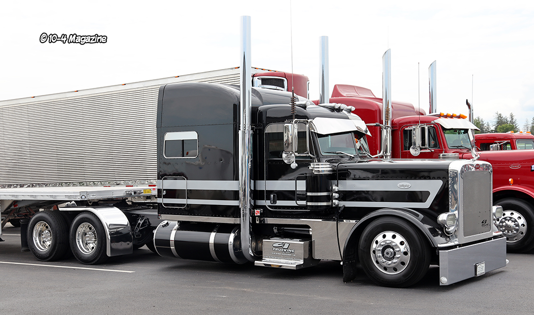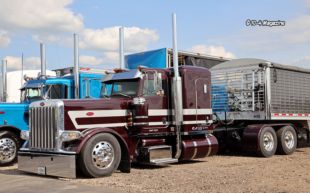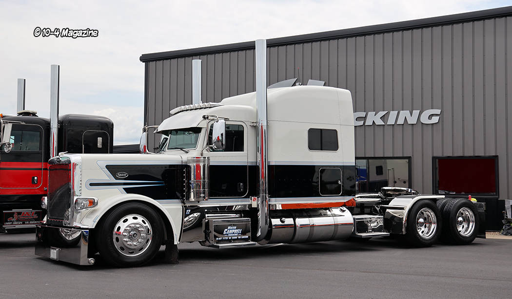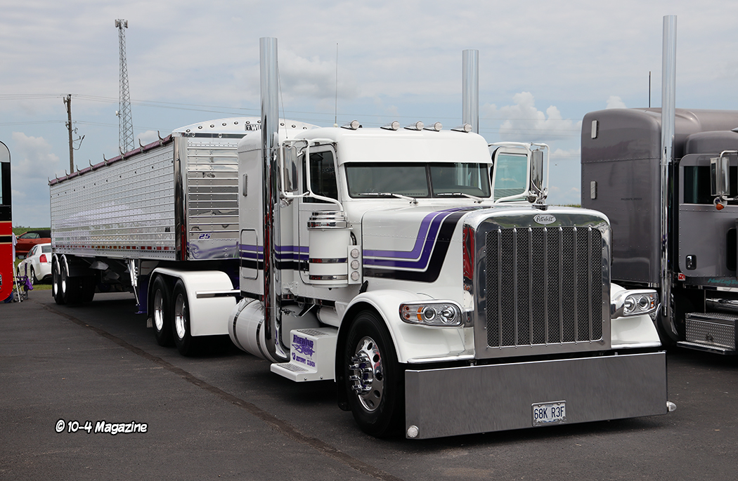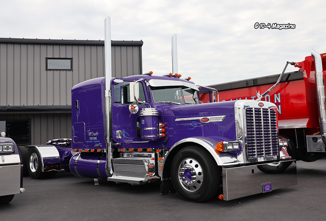 There were many outstanding trucks at this year’s show, and it was difficult for me to pick a favorite.  My top five picks were a mint green Peterbilt, driven by Jeff Levesque at Jack Moss Trucking, C&J Trucking’s black cherry Peterbilt 389X with a flat top sleeper, Hoewing Trucking’s white 389 Peterbilt with contrasting black and purple stripes, Dylan McCrabb Trucking and his purple Peterbilt 389 with lots of chrome and stainless, and a white 389 Peterbilt with classic black and silver stripes owned by Walter Campbell Trucking.  One of the many aspects I like about this show is there is a good mix of newer, classic, and older bobtail and combo trucks.