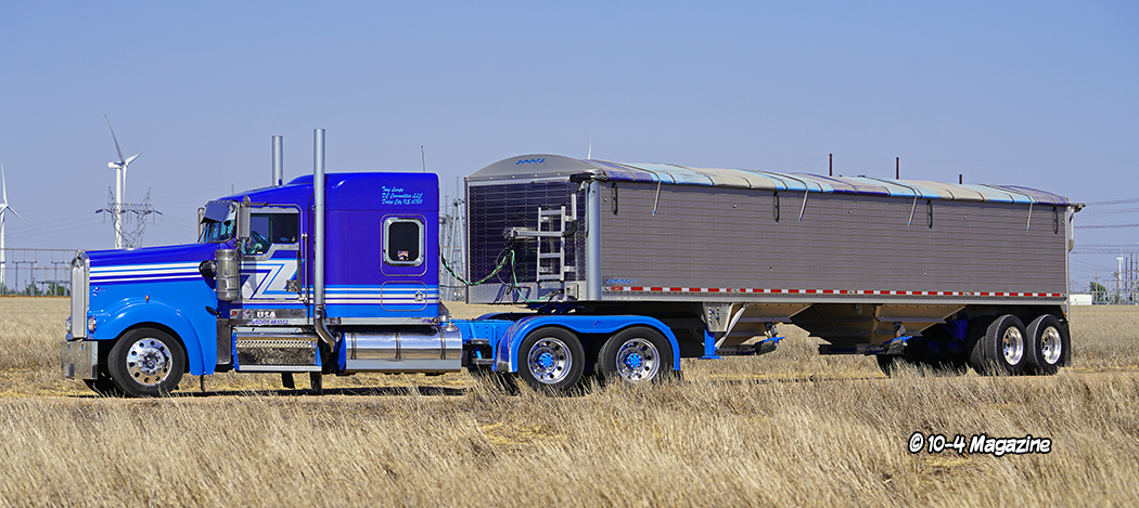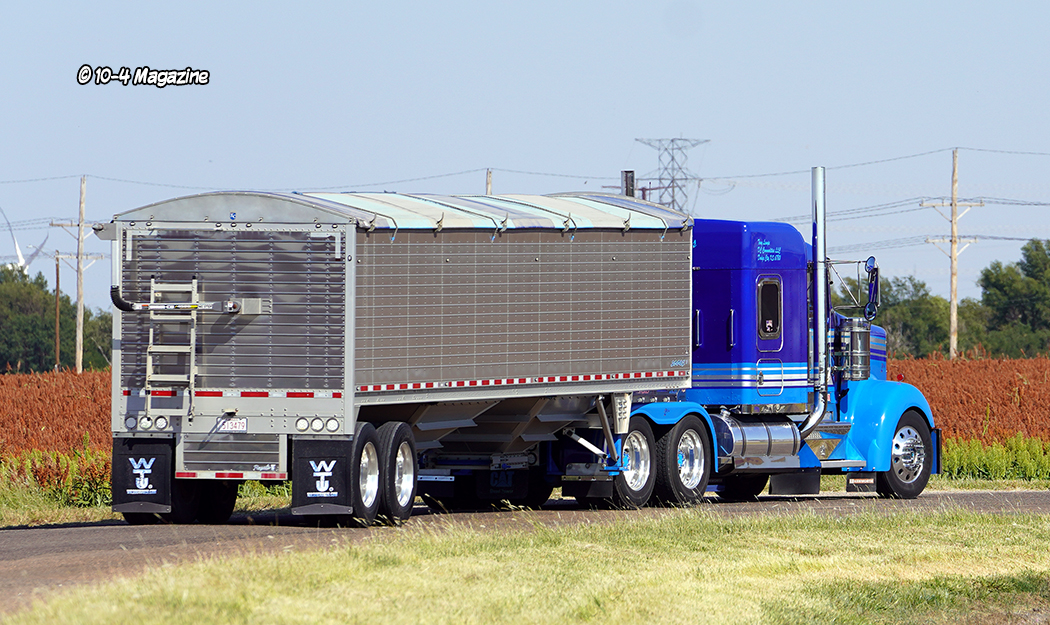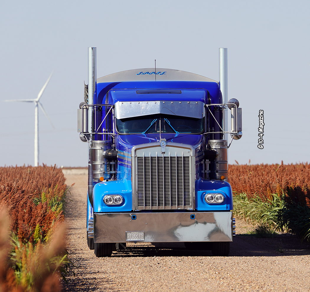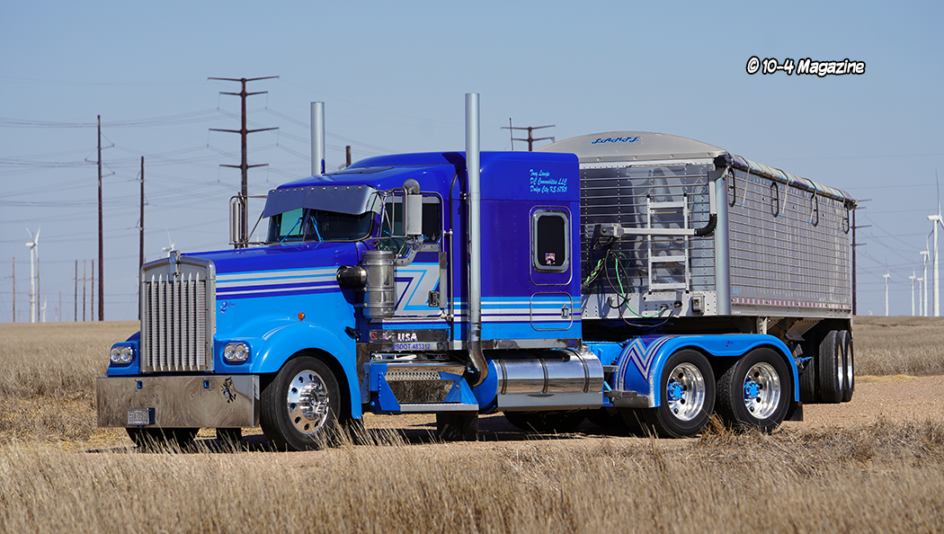 That truck is the pictured 1997 Kenworth W900L seen here. Currently powered by a CAT C15 hooked to an 18-speed, 3.55 rears, and a 250-inch wheelbase, when ordered new, the truck had a 475-hp CAT with a 13-speed and 3.08 rears. He changed out the driveline because, at the time, he was running to Carlsbad, NM three times a week. With a speed limit of 75 mph, he was hindered with the old engine and wanted to be able to run 80. A week before photographing the truck, Tony’s nephew Dustin Lampe installed a new flywheel with an easy clutch pedal. The truck also sports 6-inch Lincoln Chrome stacks, WTI fenders, a Jones Performance hood, and an interior that was customized by Tony himself. You’ll find this truck regularly hooked to a 2014 Wilson 44’ hopper bottom, which he uses to haul grain locally, as well as a lot of fieldwork during harvest.