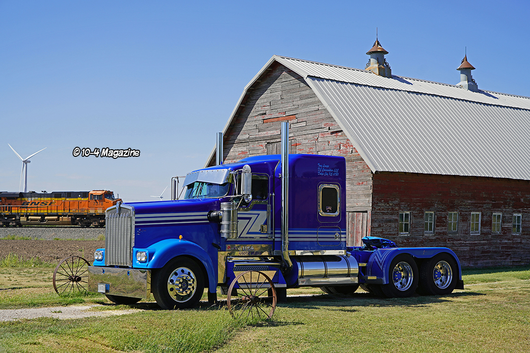 Photographing this truck was very easy considering all the locations were within three miles of where Tony and Michelle live (definitely a “small town USA” feel, where everyone seemed to know each other, and at every turn there was a story about back in the day). We photographed the truck as a bobtail at the church where Tony and Michelle were married, then in front of a nearby barn, and then got some beautiful combo shots by some milo fields, which are owned by a farmer Tony hauls for during harvest, and out amongst some windmills.