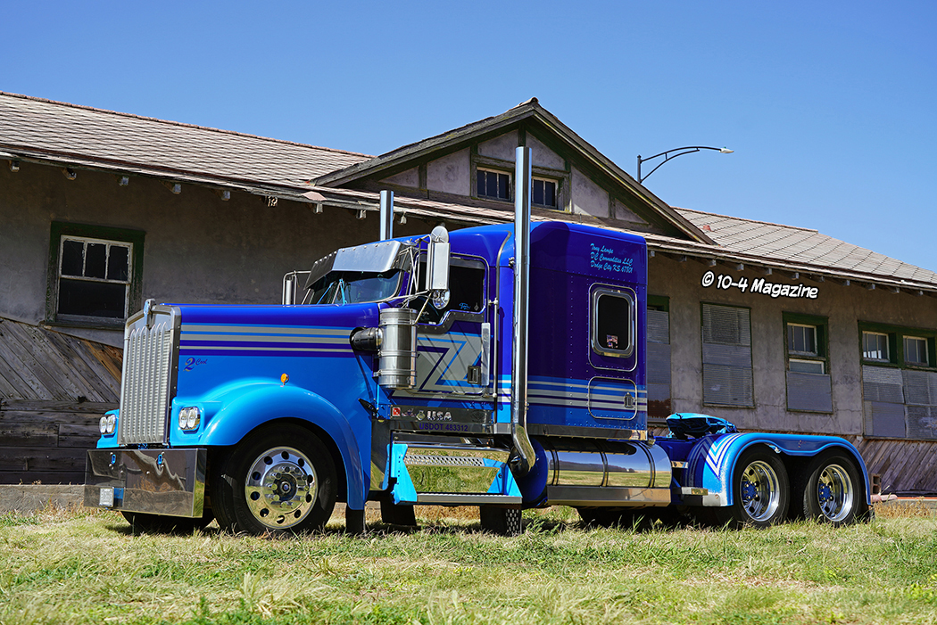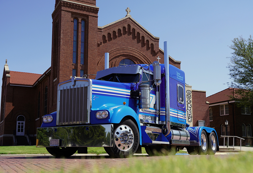In 1996, Tony found out that KW was going to offer W900Ls with the Aerocab in 1997, so he went to Dodge City Kenworth and ordered one exactly how he wanted it, including the Studio sleeper, that came from the factory with a fold-out couch, a non-factory sunroof that was added during the build process, and the factory stripe pattern he wanted. Tony spent an hour looking at the blue color swatches, already knowing in his mind what colors he was looking for (the bottom blue is actually a Ford color that had to be shipped to the factory). Once complete, the KW was shipped to Wichita, KS, where Tony and Michelle drove to pick it up, because Tony couldn’t wait for it to get to Dodge City. They took delivery of this truck in June 1996 with a mere eight miles on the odometer, and when Tony initially laid eyes on the truck, it was love at first sight.