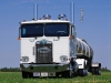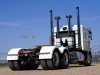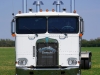 The truck is a 1984 Kenworth K100C. Originally purchased with a 855 Cummins Big Cam IV and a 13-speed RTO 14613 transmission, it now has a Caterpillar 1LW 3406E and a 13-speed RTLO 18913A, as well as 3.73 rears, and rides on a factory 245” wheelbase. The truck sports an aftermarket Goldwing bumper, 7-inch Lincoln Chrome exhaust and intake, and a factory visor. It was ordered brand-new as a straight truck with a box, which is why it has the factory 245” wheelbase. The pinstriping and vinyl on the truck was done by Mark’s Custom Signs in Great Bend, KS.