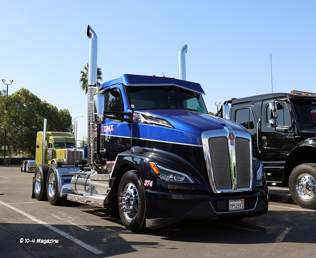 With about 40 bobtail trucks out in the parking lot, there were a few that stood out.  Some of these included Mark Tarascou’s two trucks (a dark green 2-axle Peterbilt 389 and a maroon International Lonestar dump truck), NRT’s two super clean black beauties (a Freightliner and a Kenworth), two blue and black KWs owned by TMT, and two W900L Kenworths owned by CG Soza of Soza Trucking.  CGs KWs truly cleaned house, taking home several awards each, including Best of Show for his green and black truck.