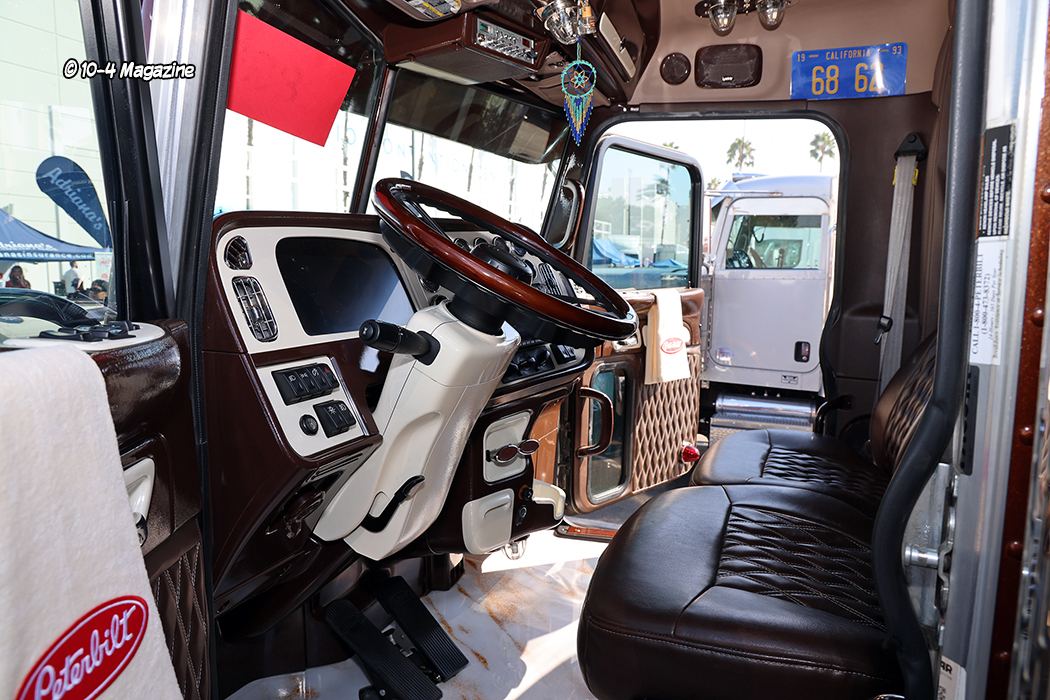 Two other big winners and standout rigs were a brown metallic Peterbilt 389 from Virk Trans Carrier, which earned Best Peterbilt, and a black Peterbilt 389 with purple stripes from 22G Trucking, which earned our People’s Choice trophy.  The brown Peterbilt had a really nice matching interior that featured a unique “marbled” floor that really caught my eye.  The cool things these guys come up with for their trucks never ceases to amaze me.  Congratulations to all the winners this year!