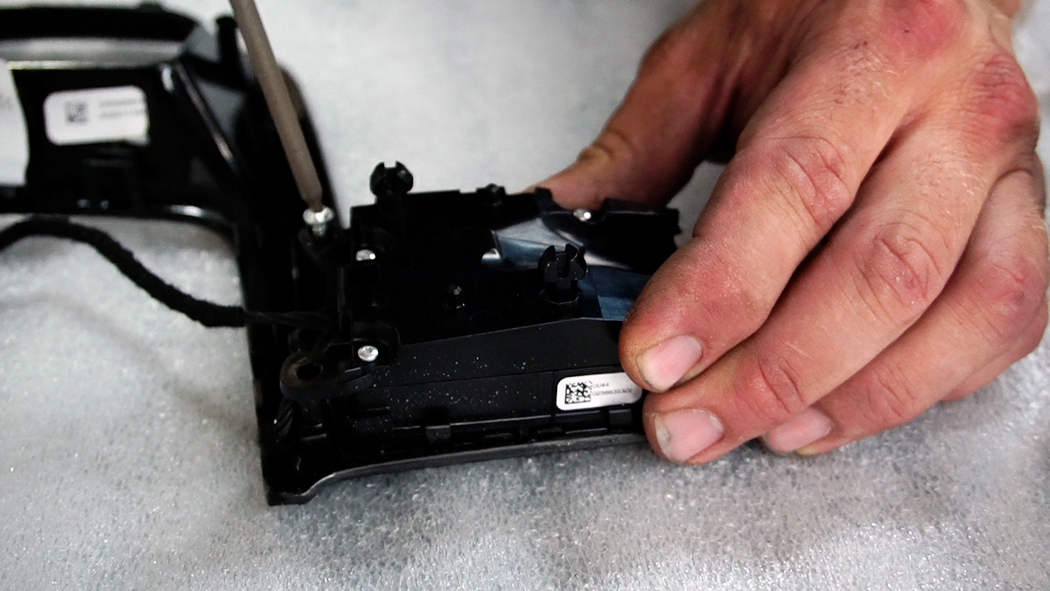 The switches are secured by (4) T10 Torx screws on the back. Remove the screws and gently pry to detach the wire harness and clips.