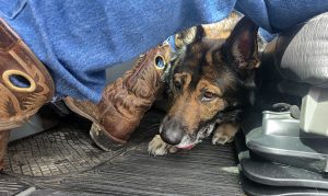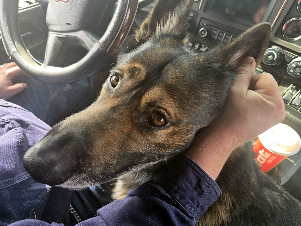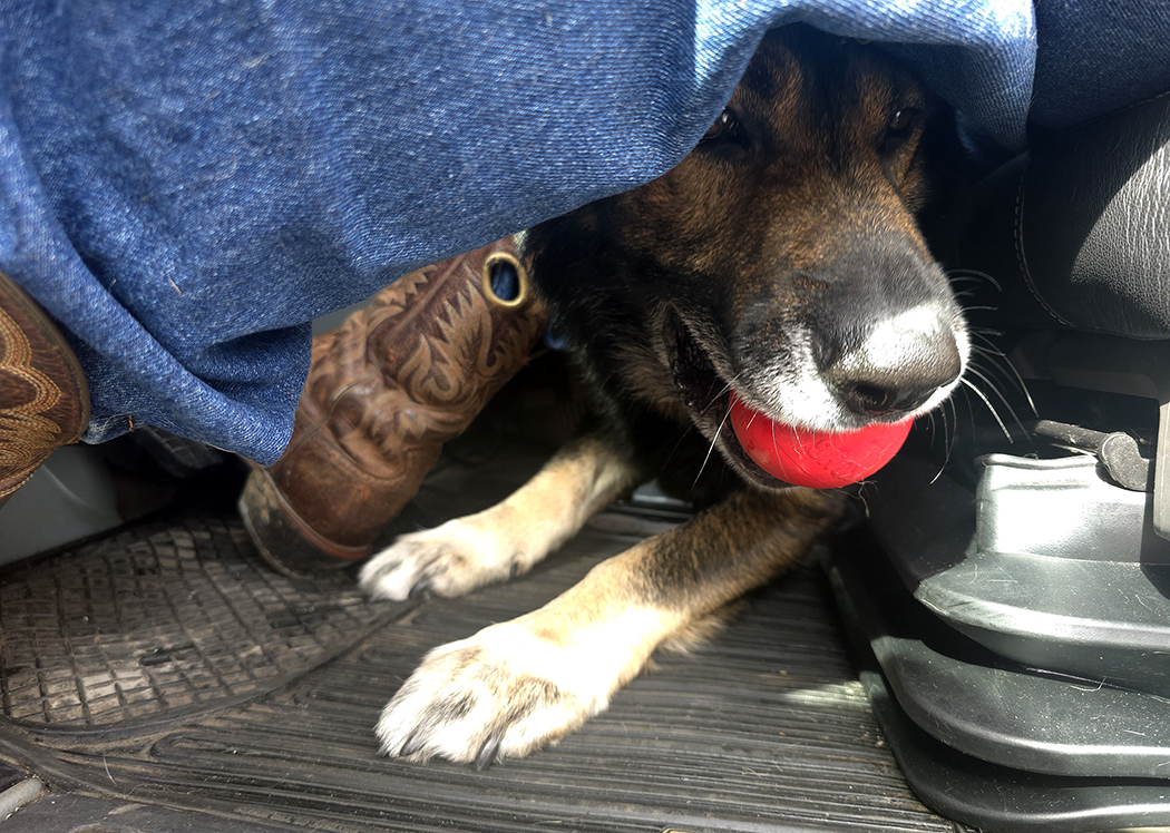 Suddenly, I feel my driver’s large hand roughly grab the scruff of my neck, yanking my front half from underneath the pedals. The shifter grinds away underneath me, unable to find a gear without help from the clutch. With his right arm and some Herculean force, he ejects me back towards the rear of the cab and I land upside down on the bunk. Undignified for me but quite the feat for him, as I am not a small, light, yappy little dog. The four-wheelers continue to blast squeaky little clown horns at our stopped truck, drawing attention to the fact that our rig is not moving.