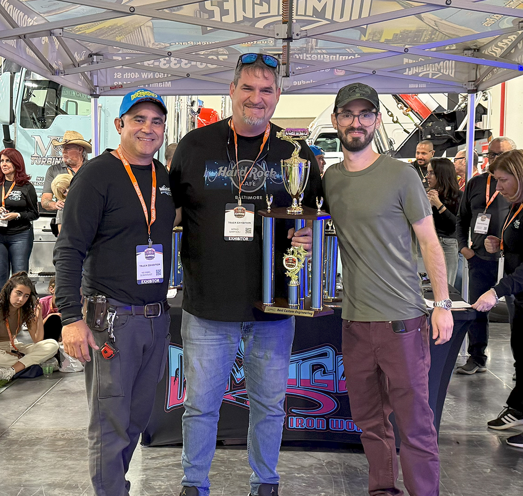 Heading to the back of the room, where the big iron was parked, this year Dominguez Iron Work in Miami, FL kindly took over the “show and shine” part of the show.  I think they knocked it out of the park, and the trucks they brought to display were phenomenal!  The custom participant’s trophies were each engraved with the competitor’s name on it.  This was a touch I haven’t seen at any other show, and it was a trophy I would have been proud to take home.  Making custom truck parts is a big part of their business, and if this is a sample of their work, I would say he’s well worth checking out.
