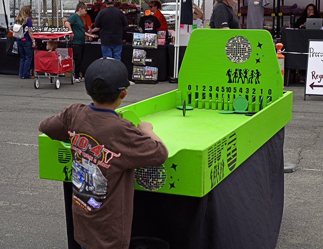 The weather was awesome, with temps in the mid-70s, and a light breeze blowing most of the weekend.  The foot traffic on Saturday was really busy, as spectators came to see the trucks, play in the Kid’s Zone, and buy raffle tickets for over 30 amazing items donated by our friends and 10-4 Magazine business partners.  Companies like Valley Chrome, Toys 4 Trucks, Hogebuilt, West Coast Foam, RLK Services, SpareTime Fab, Pickett Custom Trucks, Lifetime, 4 State Trucks, Dane Nelson Bugshields and so many more, made sure the items in the raffle were worthy of buying tickets.