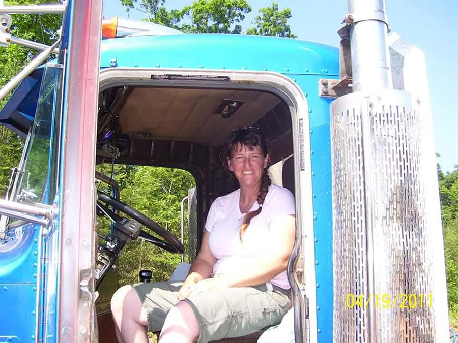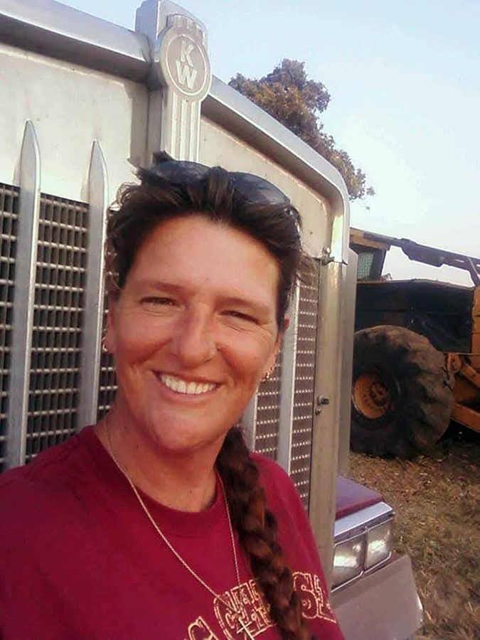 While chatting with Tina, she told us, “It’s my dad’s fault that I love trucks and trucking.” When she was nine years old, she was the tallest kid and her dad had her moving straight trucks around the farm and running along the combine, loading grain during the harvest. She admits that after driving a 1966 Mack cabover she was hooked. Pulling a hopper bottom to the feed mill and back home only made her want to go farther, and she couldn’t wait to get older.