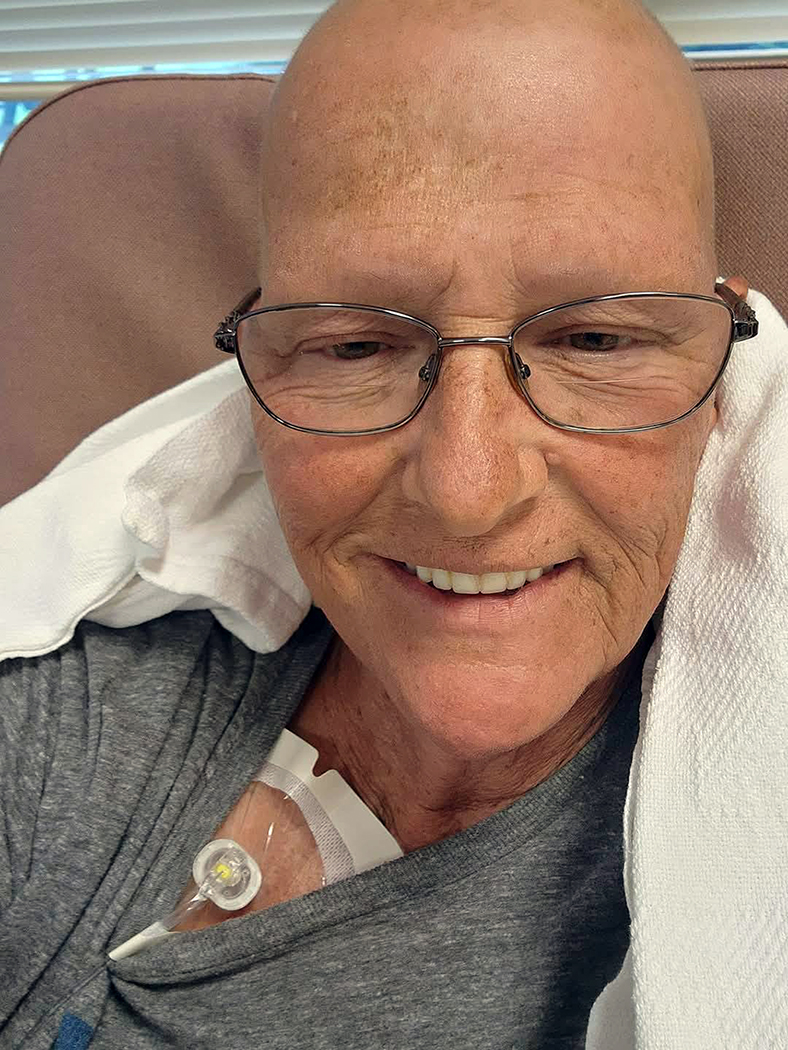 When they started radiation, she requested bionic parts, asking the nurses, “Isn’t that stuff on TV true?” Her sense of humor in this situation is what doctors say has kept her alive. Radiation to her forehead, hips and spine were the first round of treatment, and then they added strong chemo pills. Last year, the cancer was still spreading, and treatment was changed to chemo infusions that will last the rest of her life. The doctor told her that Stage 4 has no remission – only treatment. To that, she said, “At least I don’t have to shave.”