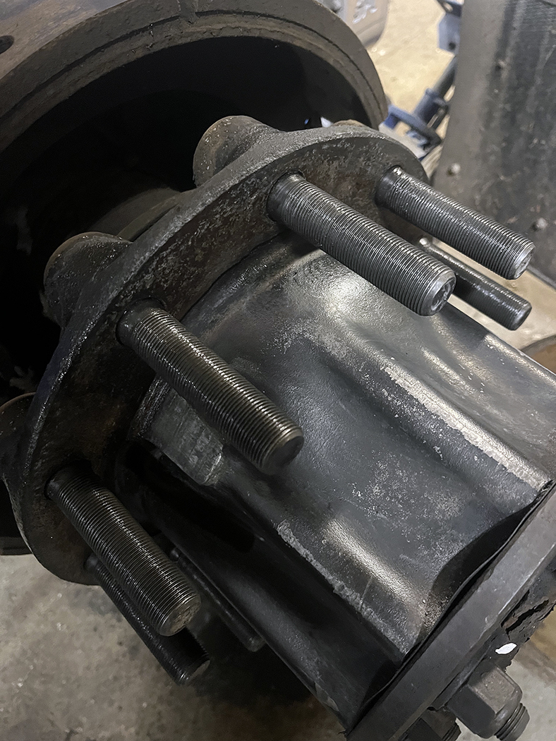 To finish the inspection process, I recommend a complete and thorough review of the axle hub and wheel stud area.  This is an area few of us see very often because they are covered by hub caps and nut covers.  Busted wheel studs are more common than one would think, along with loose lug nuts, but I’m not surprised, given the overuse of high torque wheel wrenches with the potential to apply over 1,200 foot-pounds of twist!  Most lug nuts are stamped with 350-450 foot-pounds max torque.  We have all heard if some is good then more must be better, but that may not apply here.  Lastly, since I have everything apart, I clean and inspect the brake drum, too.  We spend money on high-dollar tires, wheel balancers, and continuous tire pressure monitors, but few ever look at or service the drums.  Brake drums can have considerable corrosion build up or scaling caused by time and moisture.  I keep mine painted to slow that process and I also wire brush the inside wheel face to ensure a good flat seat.  More than once, I have found cracks early and replaced drums before something more catastrophic happened.