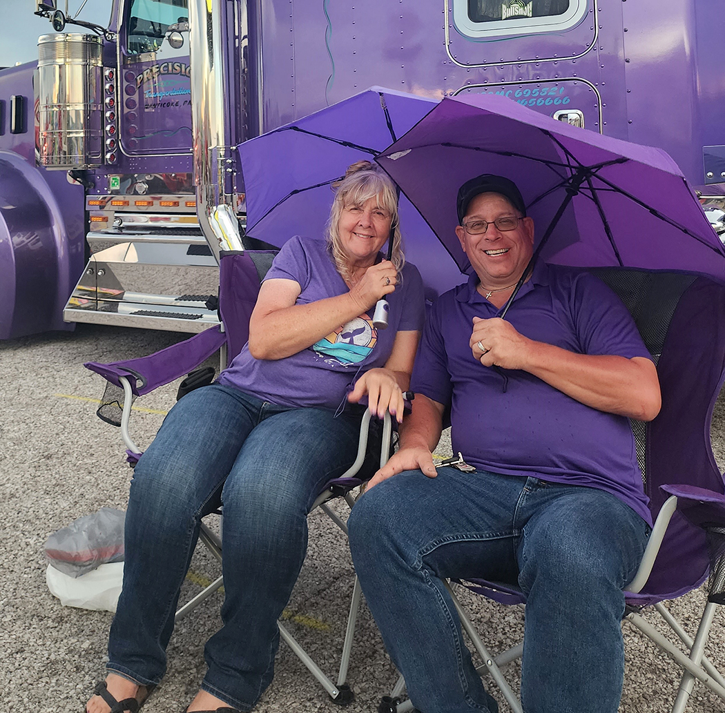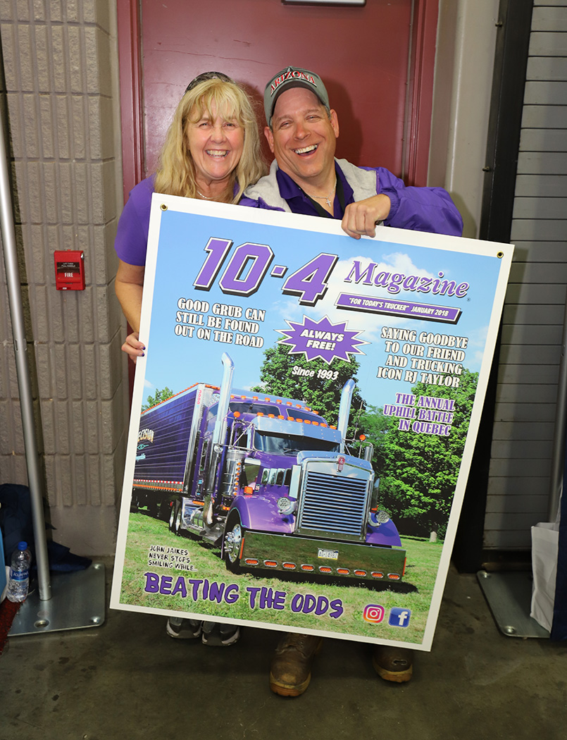 47 years in the trucking industry is an accomplishment in itself, but when you add 22 years of contributing to our beloved magazine, it is a mere part of what makes Kim Jaikes (Grimm) who she is.  Kim (66) has made a name for herself with her passion, not only for the industry, but in highlighting truckers and their stories.  Originally from Iowa, she and her partner in the Trucker Talk column John Jaikes (57), became husband and wife on July 9, 2021 during the Walcott Truckers Jamboree.  This is the same show where they met six years earlier.  Once they were married, John (our January 2018 cover) came on board with Kim and together they help each other formulate an informative, inspirational, and educational article each month (Kim was also on the cover with her then husband Rod in November 2005).  Kim currently drives for Brian Dreher Trucking out of Campbellsport, WI (our September 2019 cover).  At age 19, Kim got her license after spending $250 for a five-week course at a truck driving school in Cedar Rapids, IA in 1978.  She started out driving a dump truck until she got the opportunity to run over the road in 1986.  In the mid-1990s, Kim came across 10-4 Magazine and began picking it up.  The first truck show she attended was the Walcott Truckers Jamboree in 1990.  Kim had an early appreciation for photography which started with her daughter’s birthday parties and continued when her over-the-road trucking took her through beautiful places like Provo Canyon in Utah.  Suzanne Stempinski was the original Trucker Talk columnist, and when she and her husband Bob got off the road, she suggested that Kim take it over in October 2003.  The woman that paved the way for other woman to navigate in truck photography and photojournalism within the trucking industry was Bette Garber.  As one of Kim’s best friends and someone that the trucking industry lost too soon, Bette always encouraged Kim’s photography and writing.  These days, Kim credits John for his role in assisting in story ideas and bringing up questions to ask that Kim wouldn’t have thought of during the interviews.  Regarding 10-4 Magazine, Kim stated, “We are the only magazine that has so many drivers as writers and contributors.  People love getting featured in the magazine because it is a big deal!”  John and Kim enjoy contributing and having the ability to tell people’s stories and sharing places some people have never been before.  Together, they said that being a part of the 10-4 family is something they are very proud of and appreciate the inclusion it involves.  Thank you, John and Kim, for your continued contributions to the magazine!