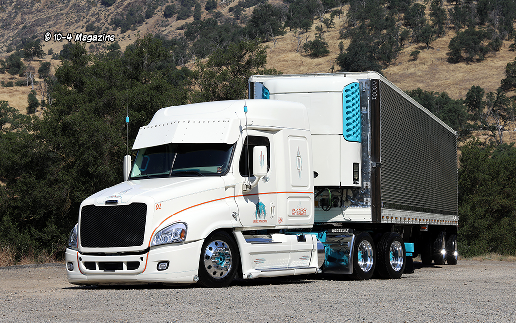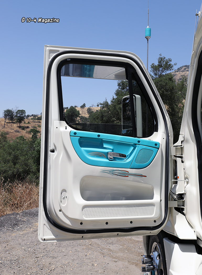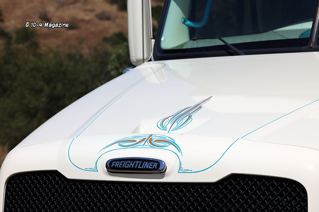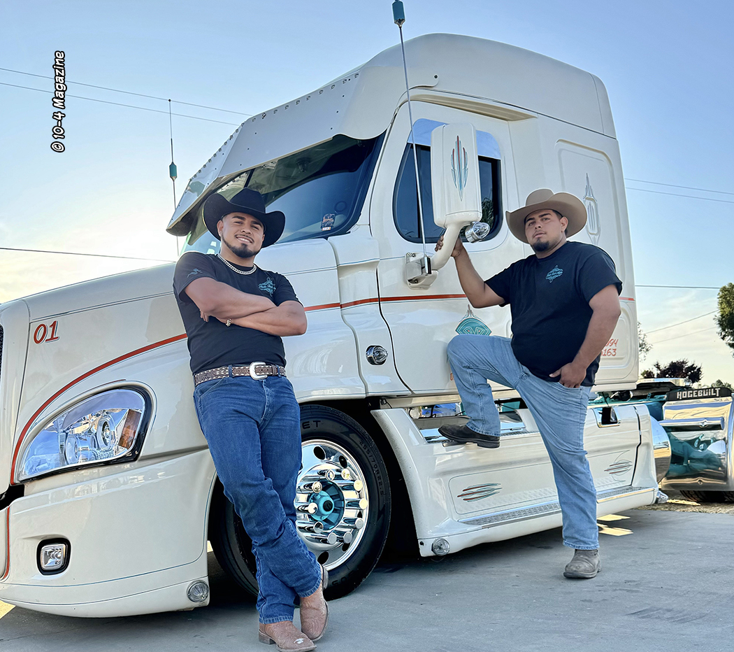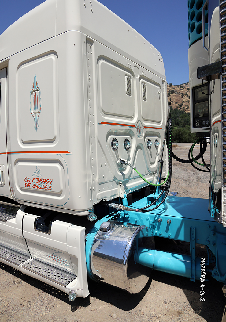 Not many custom parts and accessories are available for Cascadia trucks, so most of the stuff you see was modified or customized in-house by Rene’s brother Alex.  They even installed the entire sound system themselves, which includes a Pioneer head unit, (2) 12” sub-woofers, and (8) 6” mids.  Some future projects already in the works for “Cream Machine” include replacing the automatic transmission with a 13-speed manual unit, stretching the frame, and adding a painted aluminum floor.  Rene and Alex wanted to thank their friend Dominic Gonzalez from Antonio & Sons Trucking for helping them find and get parts fast, since time was of the essence.