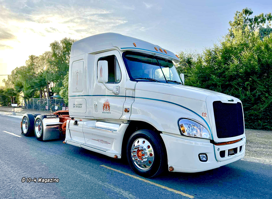 Not everyone has stacks of cash laying around or money to spend on expensive truck builds, but that doesn’t mean you can’t have a cool ride.  Young Rene Camacho (26) of Madera, CA proves that fact with his custom Freightliner Cascadia, built in a short amount of time with limited resources, that still caught our eye for a feature – and not just any old feature, a cover feature!  Rene and his family, who he works closely with, have mastered the art of “Ballin’ on a Budget” with their trucks.  And we couldn’t be more excited about him or his small fleet of daily workhorses that look great, too.