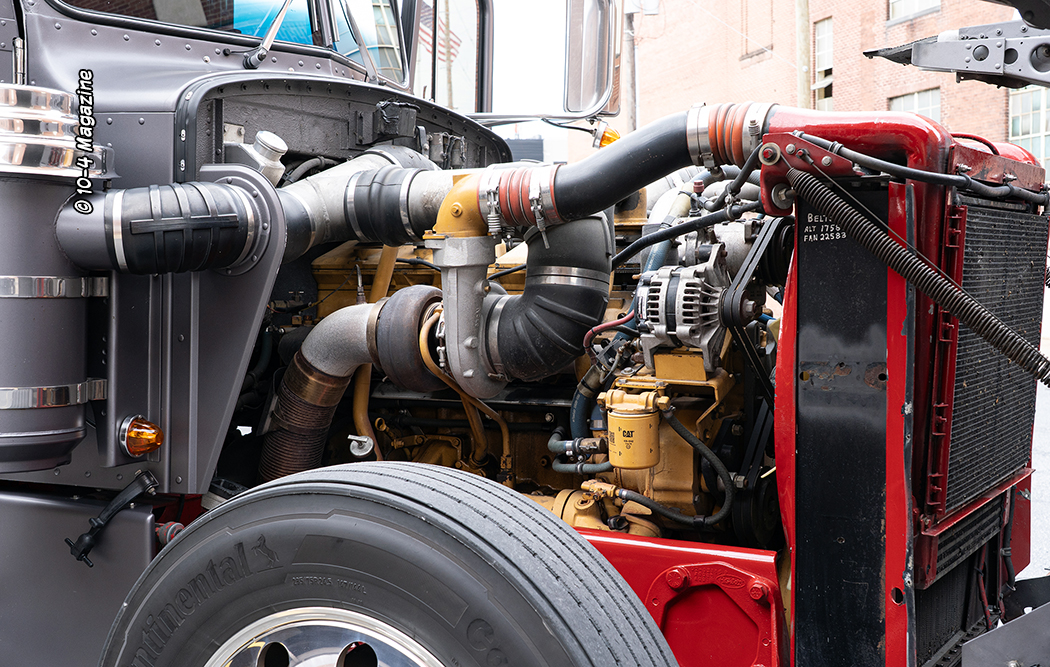 The paint was done by L&S Truck Painting in Ephrata, PA. A satin matte gray was decided on for the hood, cab and sleeper, and the frame was shot with an International Harvester red. Rick wanted the truck to pop a little, so that’s one of the reasons he went with the matte gray and red scheme. The gray was inspired by Rick’s liking of the Mopar “Destroyer Grey” color. Rounding out the exterior is plenty of pinstriping, which was done by Lady Lines, while the metal polishing was done by Alex Yoder of Black Diamond Polishing.