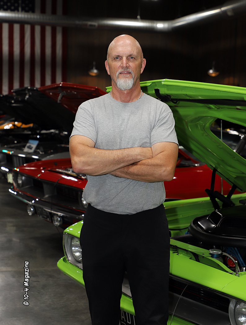 The incredible collection of cars at Hank’s garage, which is located in a quiet industrial park unbeknown to most who drive by it, includes about 75 cars, with a focus on Plymouth, Dodge and Chrysler muscle cars from the 60s, 70s and beyond. But with Challengers, Chargers, Vipers, Cougars, Cudas, Coronets, Impalas, Camaros, Bel Airs, Corvettes, Mustangs, Road Runners and more, the diverse collection has something for everyone and includes custom and original muscle cars, classics, limited editions, restomods, and a few modern hot rods, as well. On the wall it says, “He who dies with the most toys friends wins!” Which brings us to one of our last players in this story: Wes’ friend Mike Burdick.