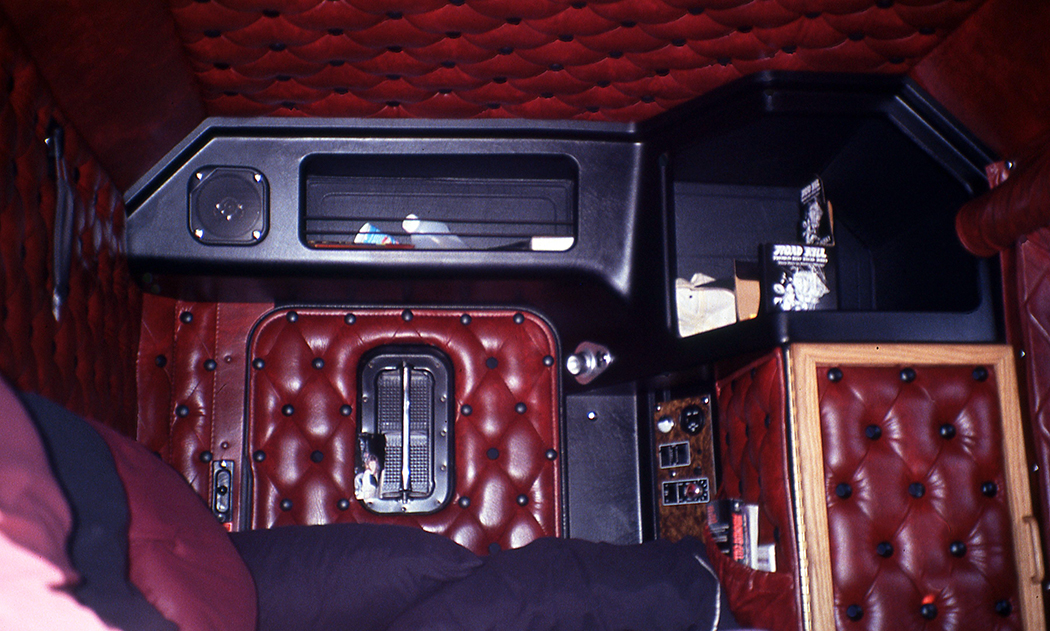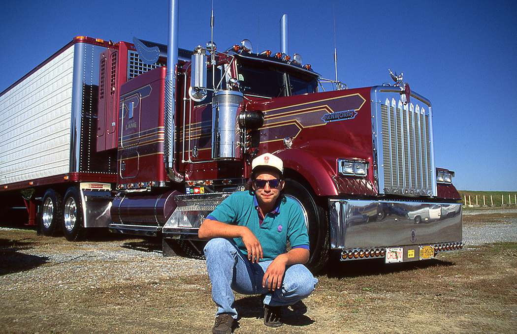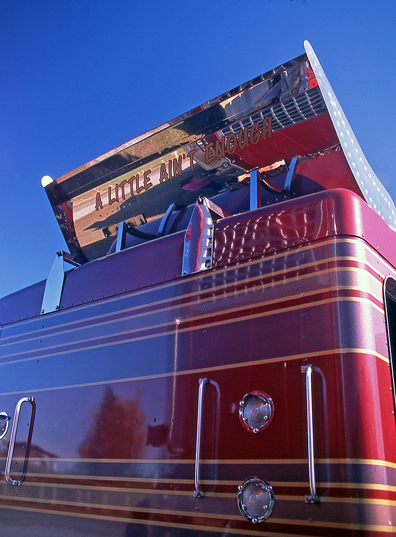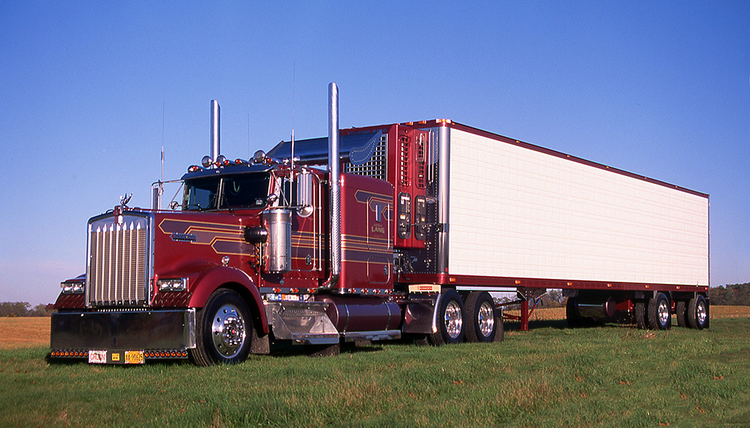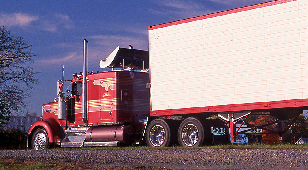 This month’s archive find is Justin Lang’s 1992 Kenworth W900L and matching spread-axle reefer trailer. Justin ordered this truck brand-new from Liberty Kenworth in Chester, PA. It had a 3406C Caterpillar with a 15-speed and 3.70 rears, riding on a 265” wheelbase, and featured a full Seattle Package interior done in crimson with black buttons. It was the first new truck Justin ever bought! These photos were taken in 1993 at Bush’s Chrome Shop Truck Show in Carlisle, PA, where Bette did a full photo shoot of the cool combination, and then later included some of the pics in a calendar and also in one of her books.