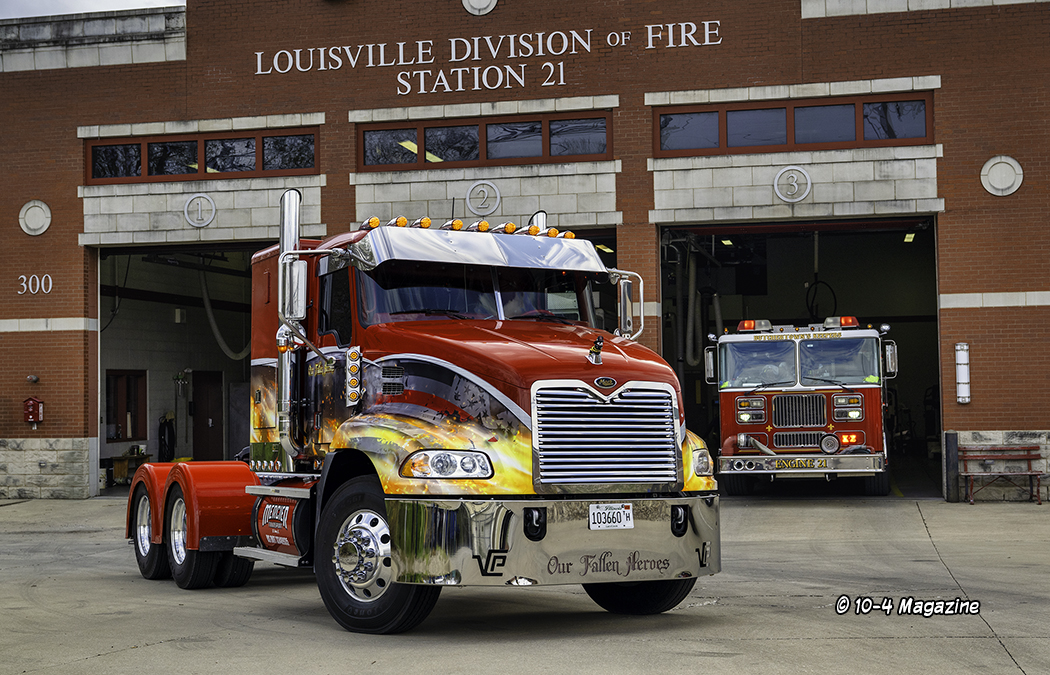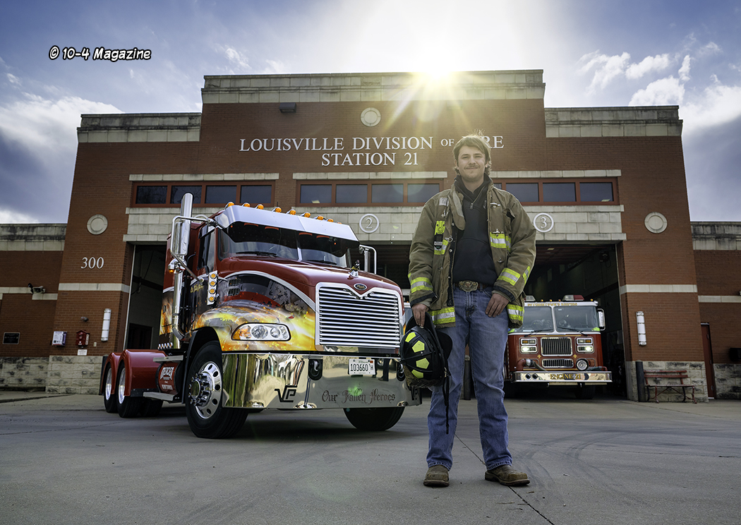 Dylan Mercier (24) of St. Anne, IL has put together a truck and trailer to honor all firefighters who have fallen in the line of duty, as every one of them is a hero. Here is how this beautiful tribute came to be. Dylan loved riding in a truck during harvest on the farm. His favorite was a red R-Model Mack, and his love of Mack trucks has stuck with him. As he got older, he got to drive different trucks and help with harvest. Before the law was passed that you had to go to a school to get your CDL, he drove around in a cornfield until he was prepared enough to take his test, and yes, he passed.