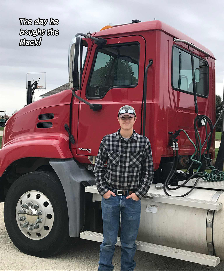 When Dylan was 17, his parents, Ralph and Lori, started looking in The Truck Paper for a Mack nearby. It was after he was 18 that they found his 2005 Mack Vision E7427 at CIT Trucks in Normal, IL. The original plan was for Dylan to start his own company with the truck, but the price of insurance changed all that (it was just too much to make it worth it). That’s when he began thinking