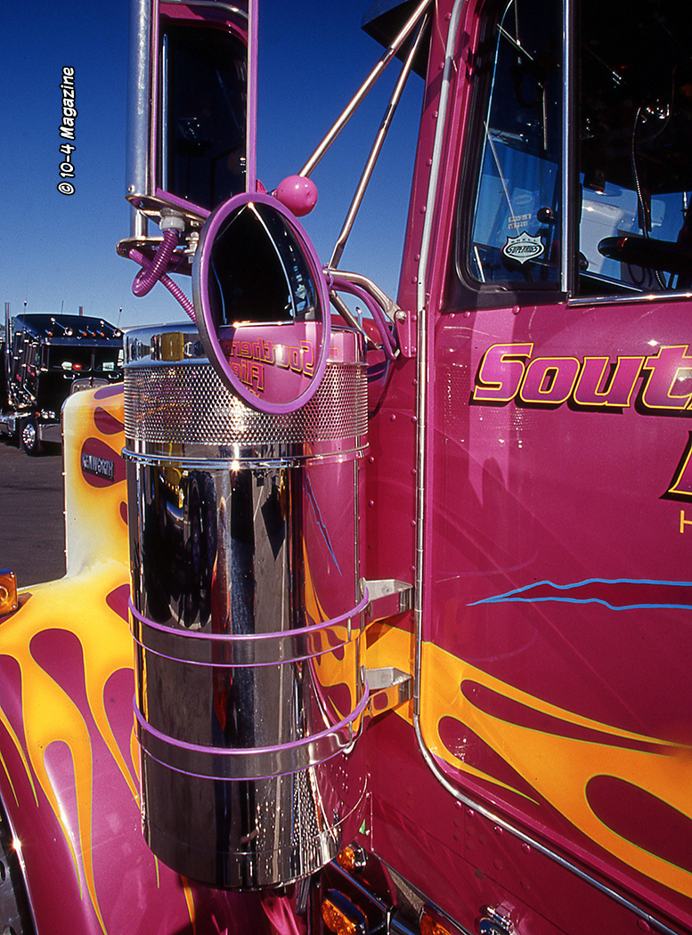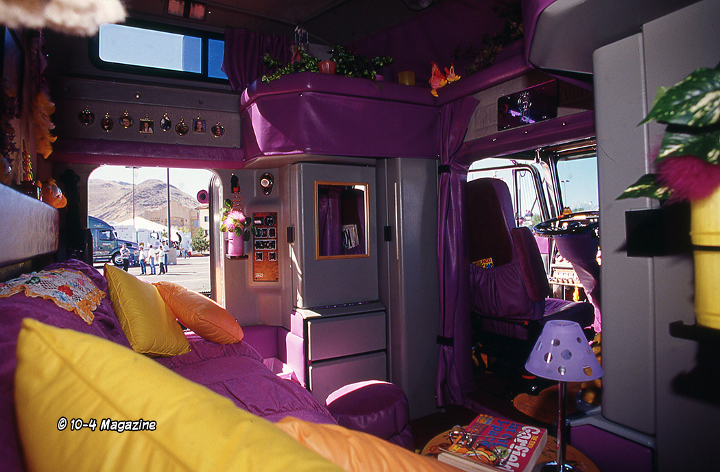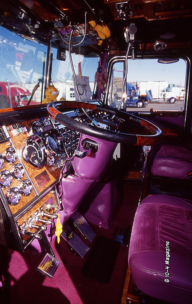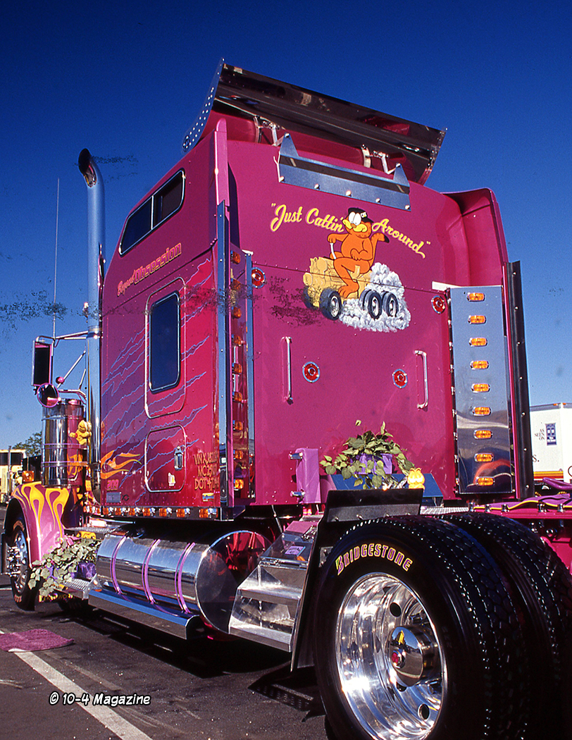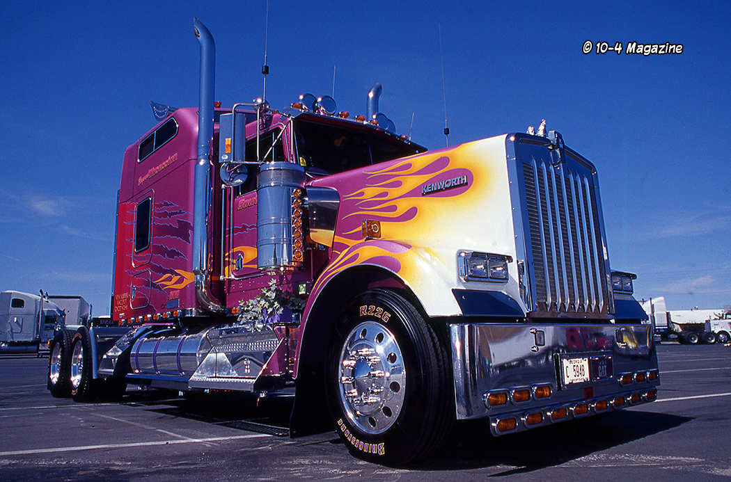 This one comes right from the owners of the truck pictured here, Roger and Heather Hogeland of Bullhead City, AZ.  In honor of our shared birthdays in November (Heather and Bette), we submit this month’s tribute to Bette, which features a picture she took of our truck in 1999 at a show in Reno, NV.  Our 1999 W900L had a 600-hp 3406E CAT and an 18-speed with 3.55 gears.  We named it “Beyond Obsession” since it was our 2nd show truck following “Total Obsession”.  We had the interior completely customized.  Roger and I pulled a 48’ spread-axle reefer between California and New York.  We have been married for 41 years, and both miss Bette dearly.