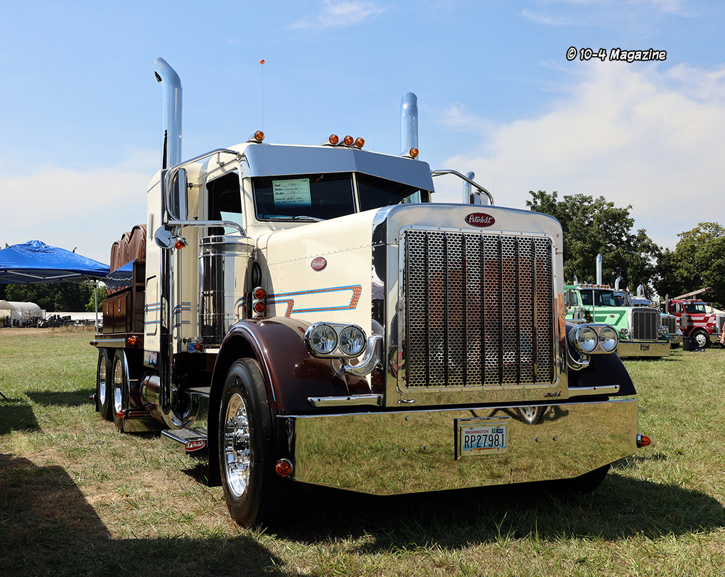Some of the notable fleets and folks at the show that had multiple trucks in attendance included George Van Dyke, Troy Charboneau, John Kooy, Oldland, Tyler Picknell, Josh Roberts, Mallorie’s, Gus Hulstein, Ram Trucking and many more.  Josh Roberts’ silver and black 2004 Peterbilt 379 caught our eye, so we scheduled a photo shoot for the next day.  Driving around the area on Saturday, we found a great spot nearby to shoot, but immediately after arriving on Sunday morning at the place, we were run out by an overzealous ranger (insert eyeroll here).  Back to the show grounds we went to take the pictures – so much for keeping it a secret!  But, as you probably already know, it showed up on our cover last month (October 2025).