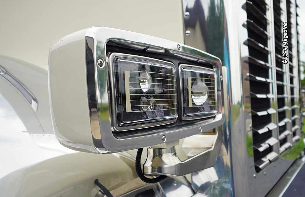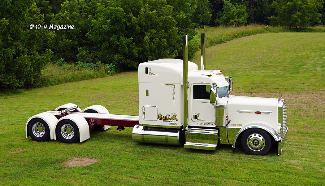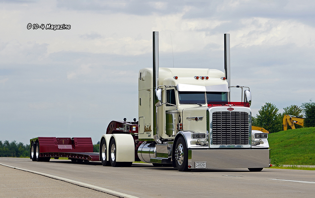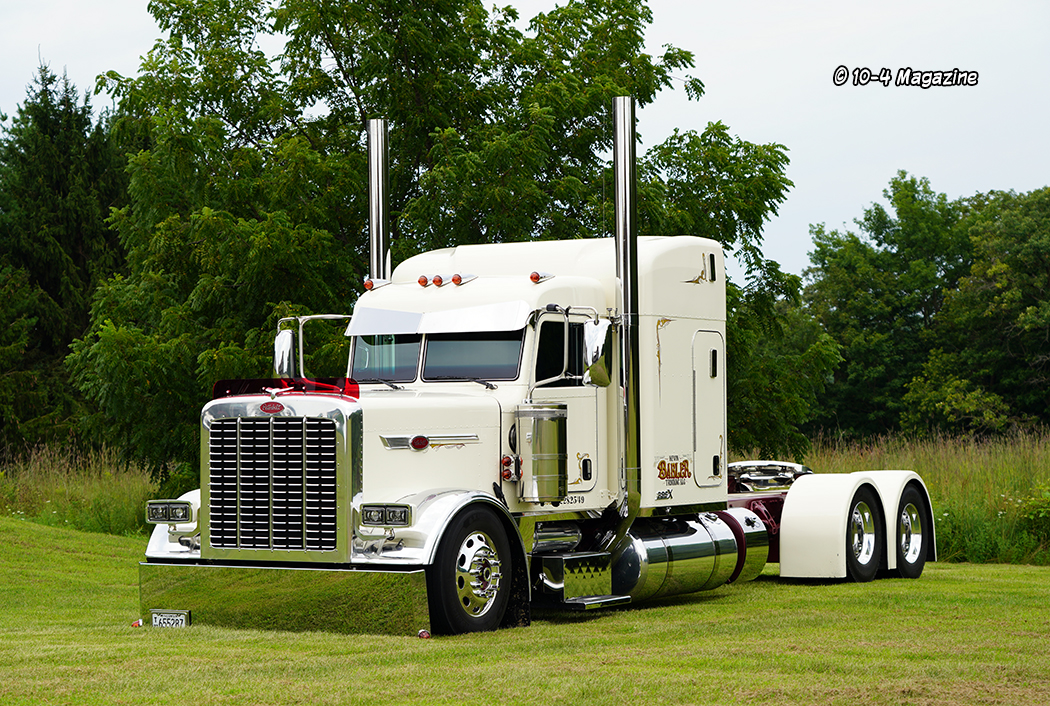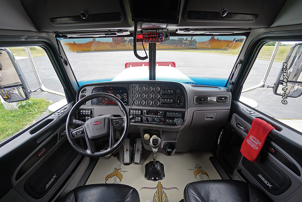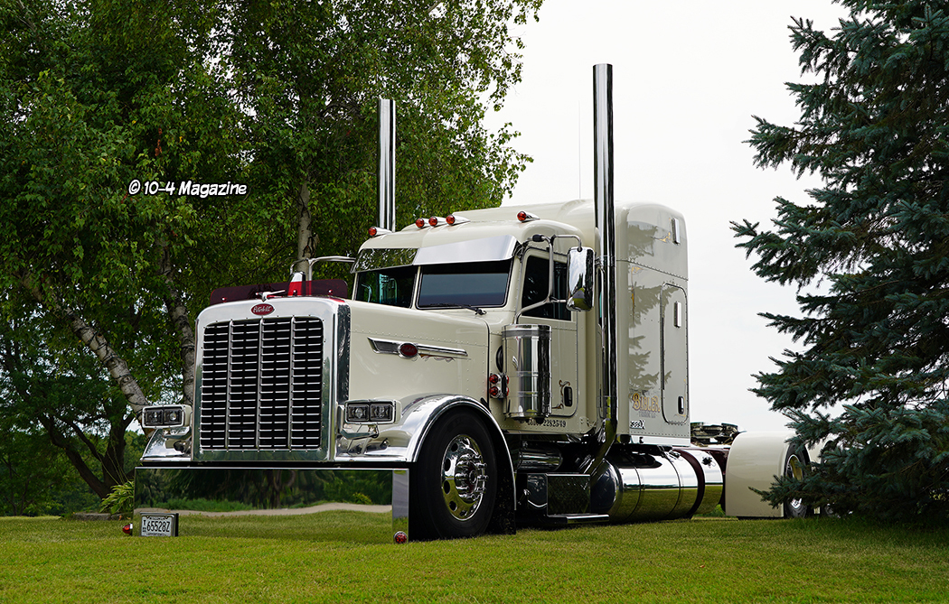 In the winter of 2022, Kevin had ordered a few trucks, and once they were completed in May 2023, he went to the factory in Texas to get them.  Included with these new trucks was a numbered 2024 Peterbilt 389X.  He didn’t want to risk getting rock chips or put extra miles on the trucks getting them delivered to the dealership from the factory, which is why he asked for permission to pick them up himself.  The 389X is #247 and is equipped with a 605-hp X15 Cummins engine, an 18-speed transmission, 3.08 rears and a 308” wheelbase.  There are also plenty of cool extras including an in-house built deck plate, train horns, double square 359 headlights, a Dane Nelson bug shield, RLK visor, Shift Products fenders, Lifetime billet oil covers, 12 Ga. Customs DPF cover, and a 4 State Trucks battery box.