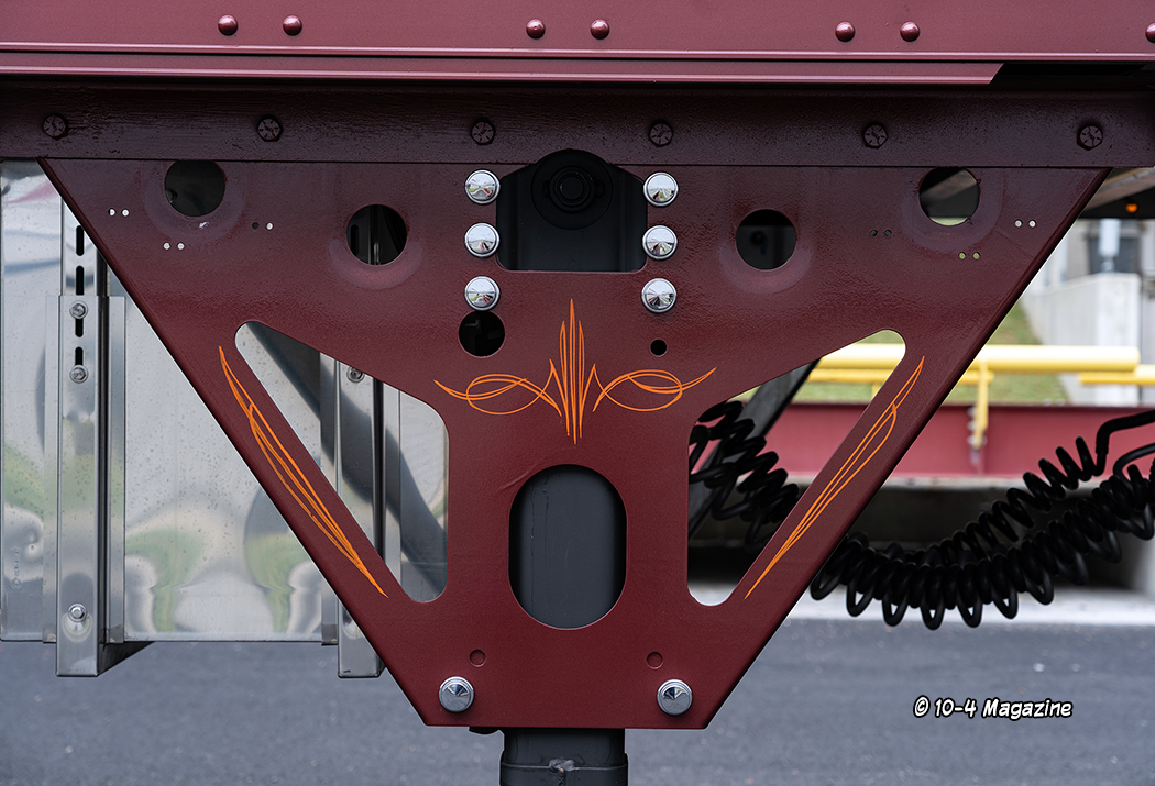 At this time, the interior was also installed by Randy Martin at SpareTime Fab, based out of Myerstown, PA. Once the Kenworth was completely put back together, it was taken back up to Bloomsburg for some final touches. Dan’s mom Sue did all the pinstriping and lettering on the truck. Dan used to haul a spud wagon, but earlier this year he picked up a 2026 Vanguard refrigerated trailer. Once the trailer arrived, Dan and the guys got to work on making it their own. All the paint on the upper and lower rails, landing gear, reefer unit and several other spots was done in-house. Dan’s mom was able to put her touch on the trailer, as well, adding more classy pinstriping and the company name.