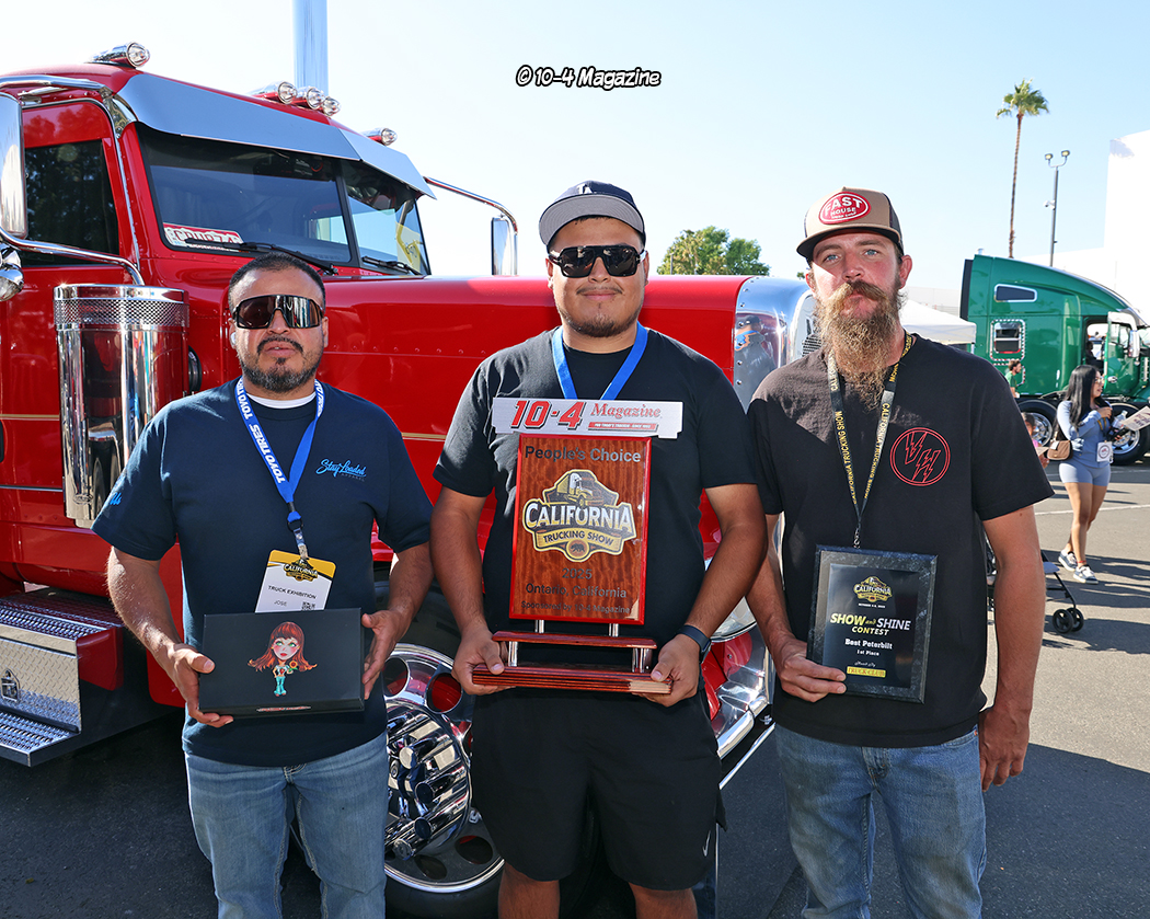 Once the raffle prizes and awards were handed out on Sunday afternoon, it was time to pack up and head out. We would like to thank Oscar Medina and his entire crew for always taking great care of 10-4 Magazine at this truck show. As mentioned before, they also host and produce shows in Florida (February) and Texas (June) that are similar to this one, and we have heard nothing but good things about both of them. Next year’s California Trucking Show is scheduled for October 3-4, 2026, at the same location in Ontario, CA, and we are sure it will once again be a packed house. Come out next year and help us celebrate another “10-4 Day” at the show. We can’t wait to see you! And this year’s winners were…