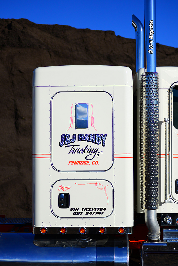 Knowing that a company is built both on its employees and customers, Shawn also wants to acknowledge all the drivers, mechanics, office personnel (including Georgia and Cash) for their time and dedication to making J&J Handy Trucking the business it is today. Shawn also wants to thank Schmidt Construction Company and Pete Lien & Sons, Inc. for their decades of loyalty and business. Noel Franco and Justin Renholm also deserve thanks for their involvement in building this Kenworth and matching Hanson end dump, along with John, Ernie and Dillon and their crew at MHC in Pueblo for their support and service (not just for the truck here but for the entire fleet), and Dirks Truck & Equipment Repair for the steadfast service on mechanical breakdowns.