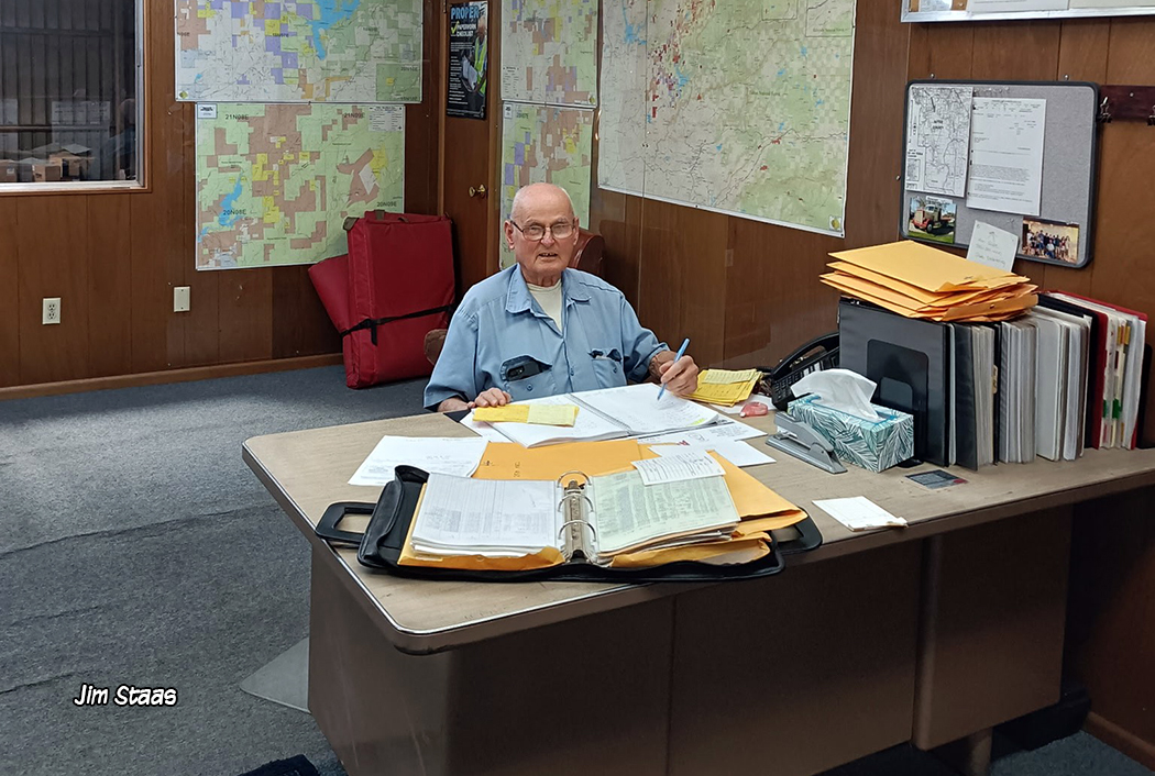 While still in college, Jim Staas (now 85) joined the company in 1958, working out in the logging fields, as a tail hooker under the shuttle in the day, and driving a water truck off highway at night.  After graduating, the brothers signed off on his commercial license, and he began driving a log truck.  The first new truck Siller Bros. ever bought was a 1955 Kenworth, and they still own it today.  The company bought their first new Peterbilt log truck in 1961 for Jim, and after that, they only bought Peterbilts (Jim got a new one every two years).  In 1976, they made Jim the Truck Boss, and then at some point he became Operations Manager, which is still his title today.