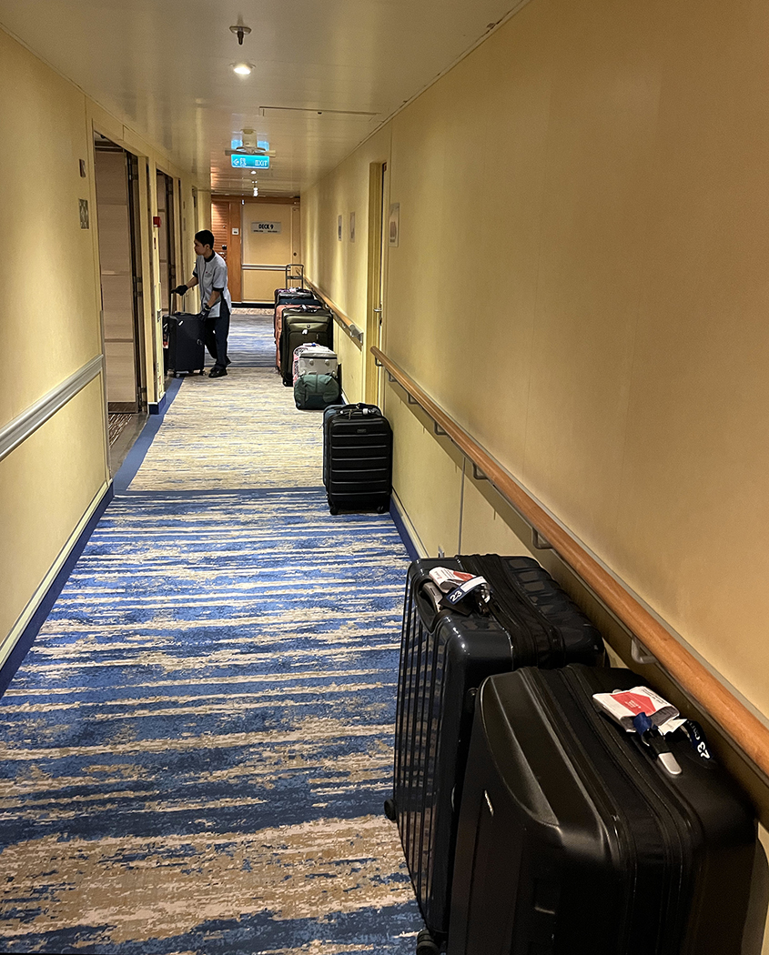 Surprisingly, our bags found the right rooms and were in place before we were. I was informed that the ship lines have an eight hour window, from the time they arrive until they depart, with a new load of passengers. During that time, they need to offload all of the departing passengers and reload the new ones, along with refilling the ship with fuel, supplies, and making personnel exchanges. I mentioned how the luggage found its way to the berth before we did, and that was because our steward (Hans) had found and relocated all the bags and prepped our rooms clean enough to pass any military inspection. He later told me he was responsible for 37 rooms on our deck (floor), plus the common area.
