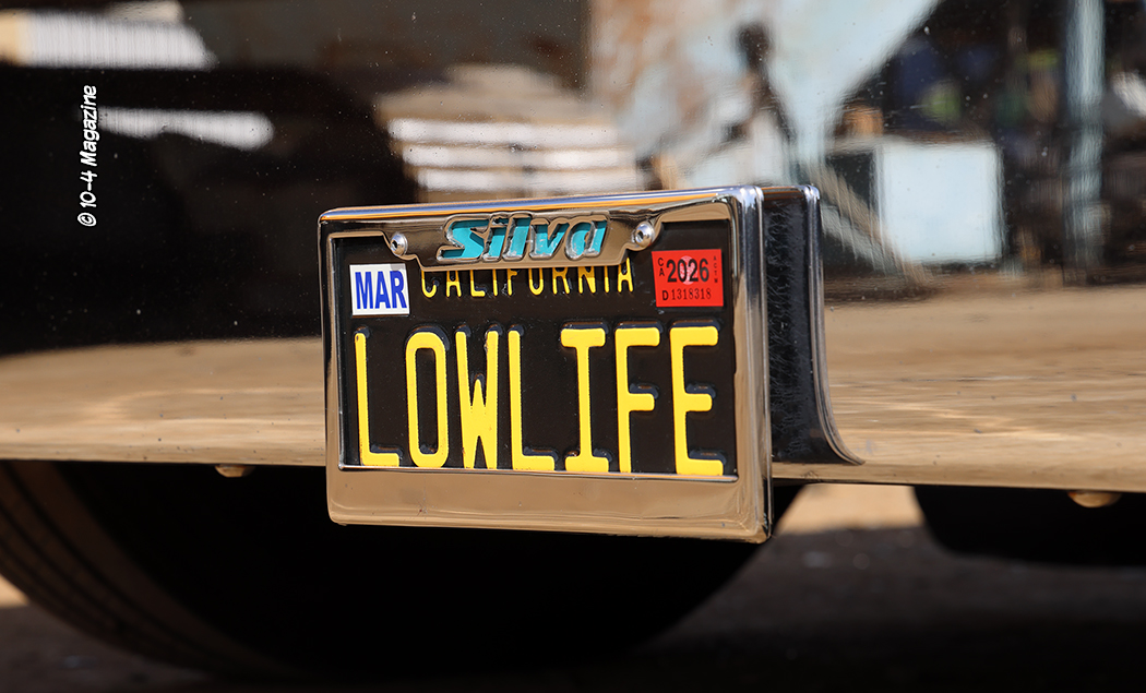 After being invited to the Peterbilt factory show and parade in Denton, TX, last year (2025), Stan decided to spruce up the old hot rod a bit and then hauled it with the 389X out to Texas. Painting the entire motor and then installing a polished stainless firewall, which hides all the wires under the hood, he also added a few new shiny things like a shock box cover with SILVA cut into it behind the sleeper, custom flaps and weights, and stainless heavy haul “ramps” on the back. Stan has been working with stainless steel since way before it became commonplace like it is today, and almost every accessory they make for their trucks is stainless. One last cool newer touch is the license plate, which reads LOWLIFE. This is not a fake plate, it is an actual plate, from the California DMV, and the truck is registered (it just can’t pull a load). Plans to add air-ride to the front axle of the old hot rod truck are in the works, as well, at some point in the future.