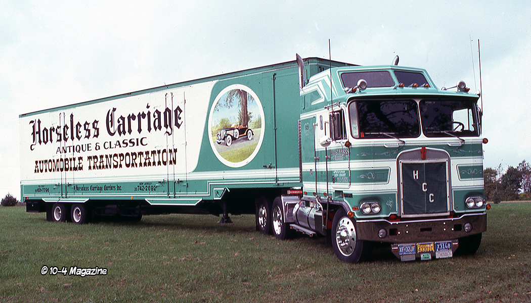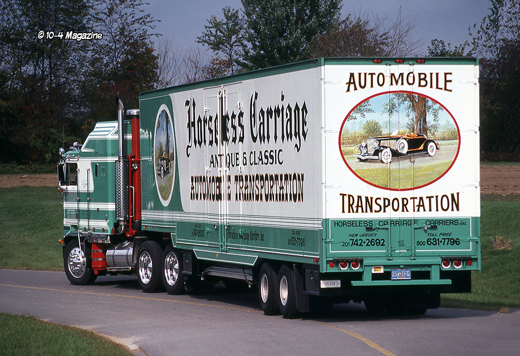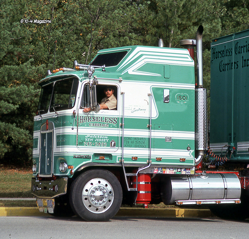 This month’s “Out of the Archives with Bette Garber” features a 1980 Kenworth K100 “cabin over” that was owned and operated by Dave Sweetman for Horseless Carriage.  Powered by a 400 Cummins Big Cam III hooked to a 15-speed, Dave used this truck to haul specialty vehicles until 1988, when he traded it in for a new T600 Kenworth.  At that time, it had 1.2 million miles on the odometer.  The picture was taken by Bette Garber, along with many others, for a cover feature in the April 1986 edition of American Trucker Magazine – that was 40 years ago this month!